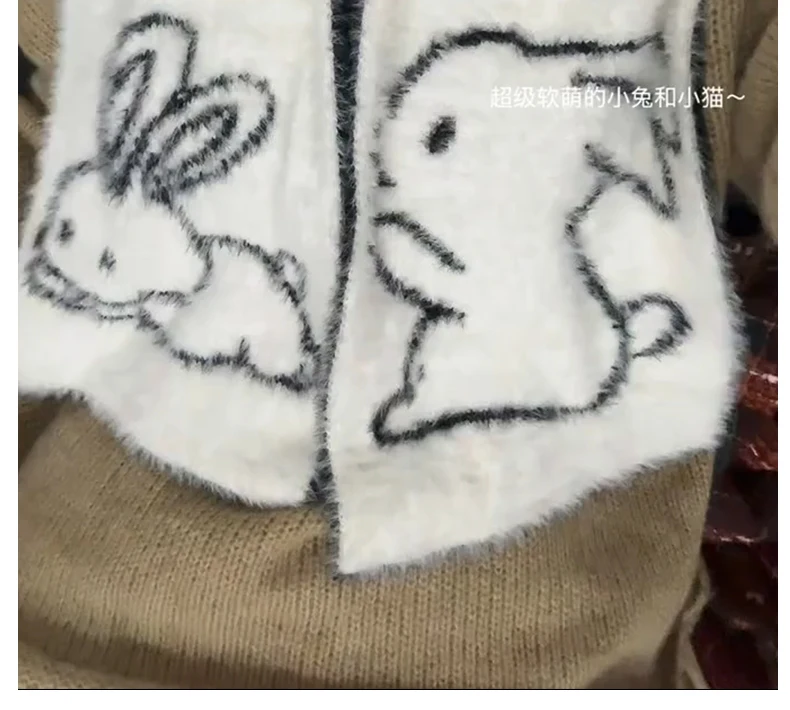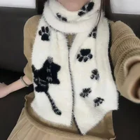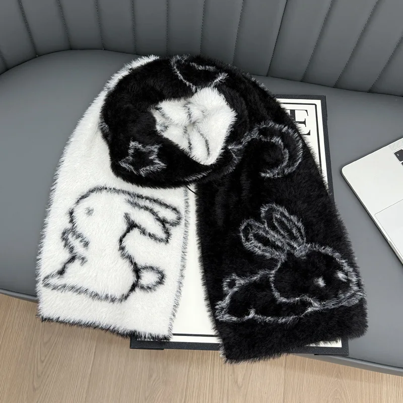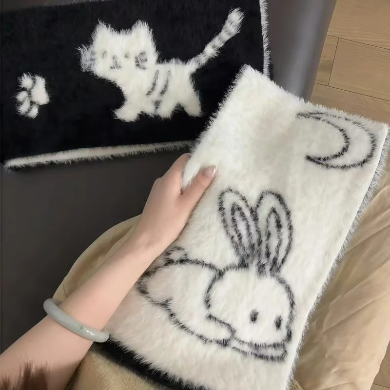 Japanese Cat Guitar Pattern Knitted Scarf Two Tone Versatile Warm Windproof Cold Proof Autumn Winter Scarf For Students