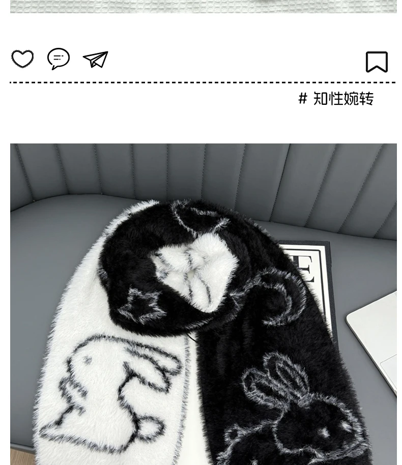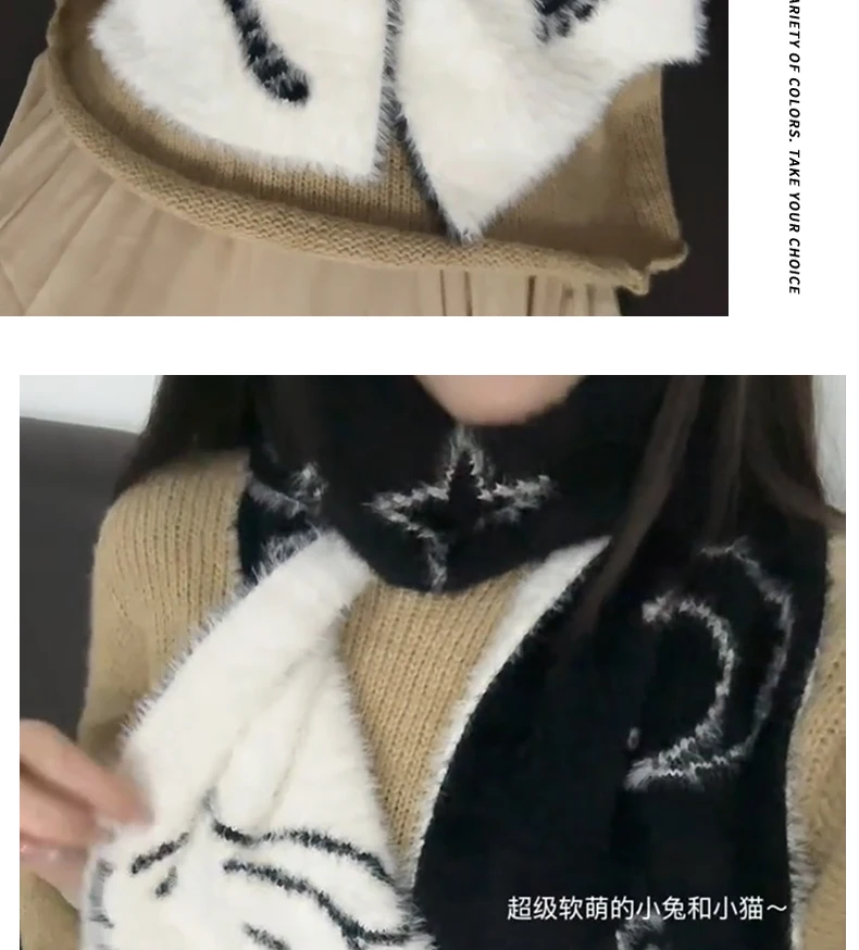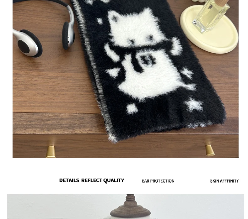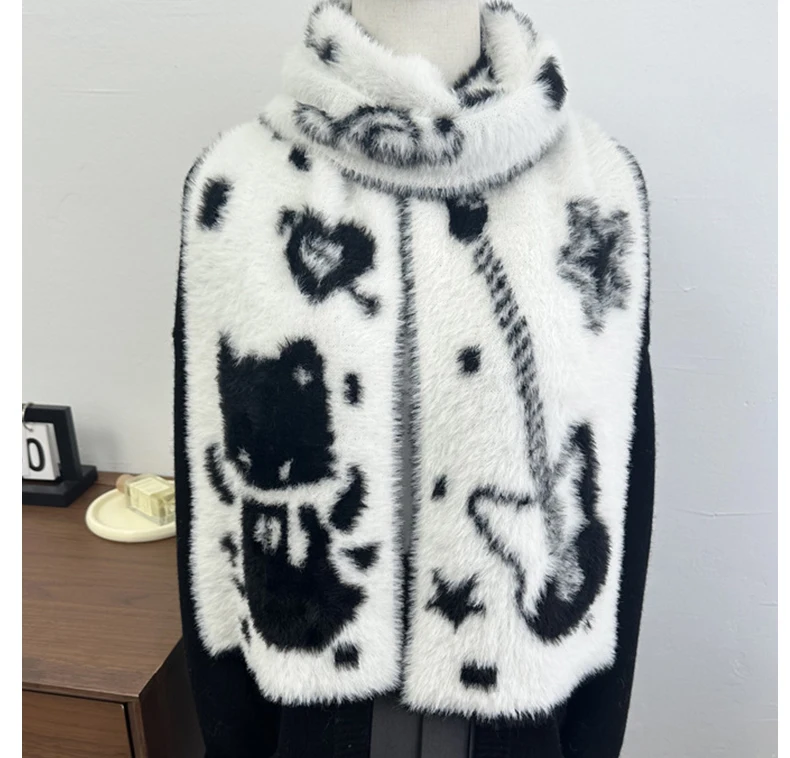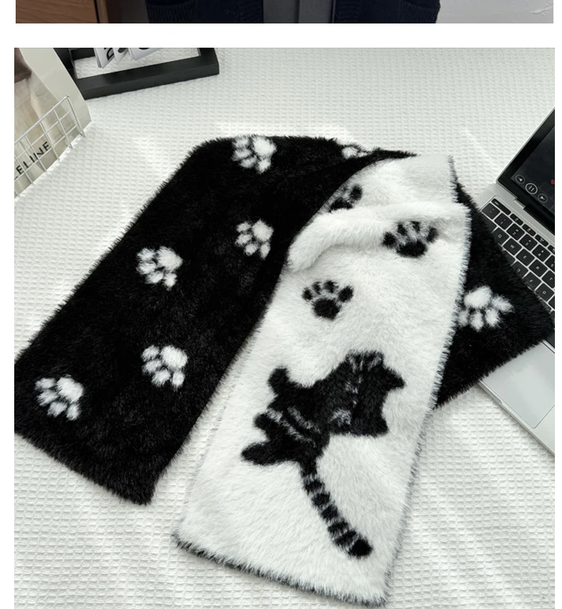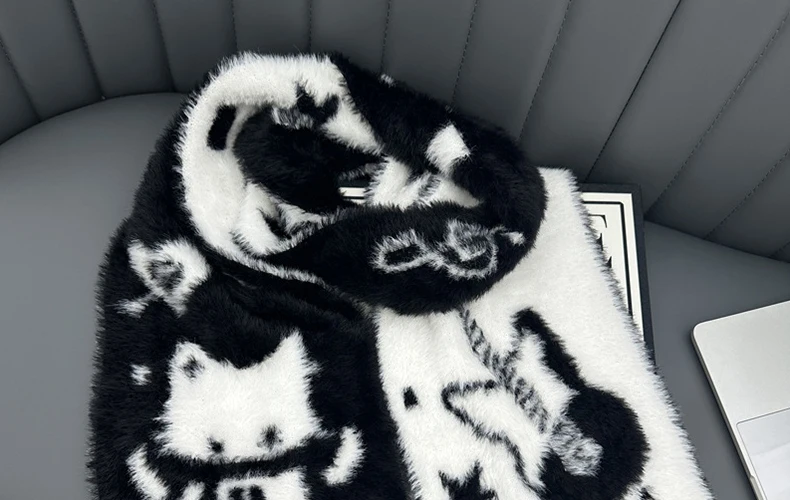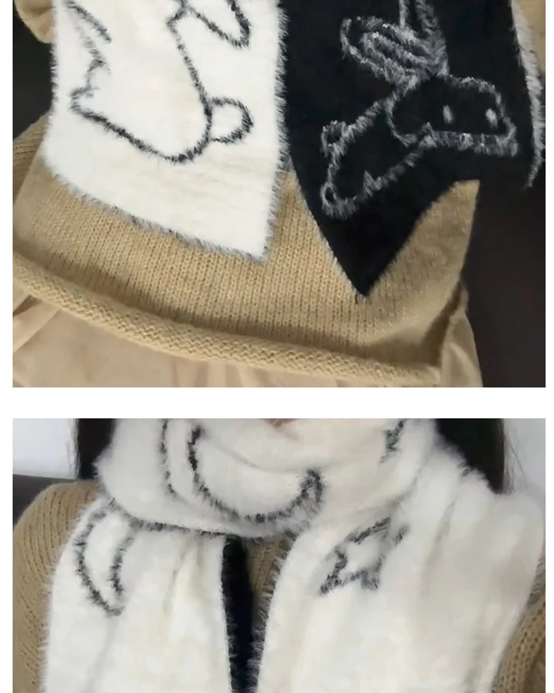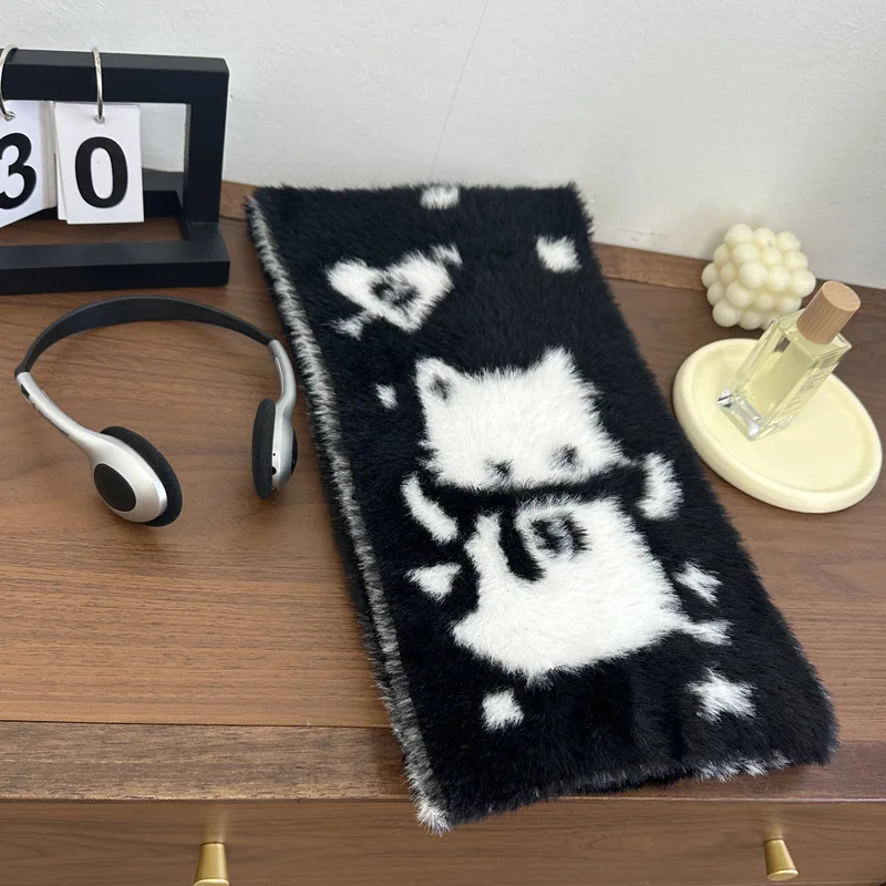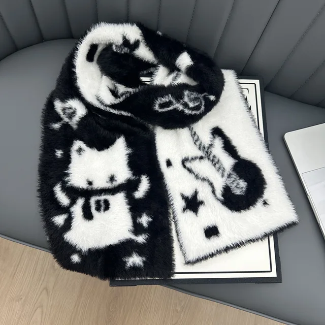 Japanese Cat Guitar Pattern Knitted Scarf Two Tone Versatile Warm Windproof Cold Proof Autumn Winter