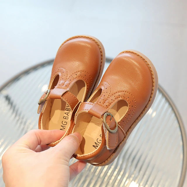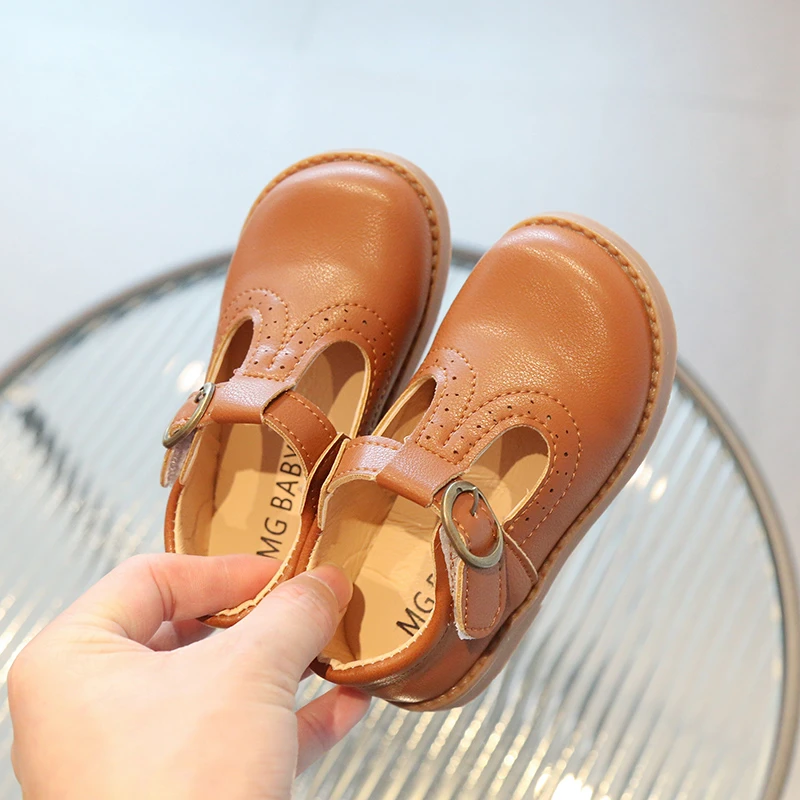Japanese Style Children Leather Shoes Retro 2023 Spring and Autumn Hollow Boys and Girls Hollow Solid