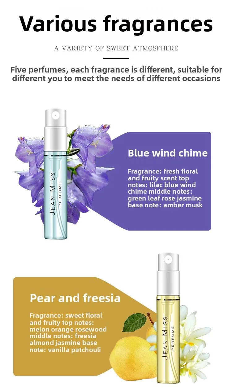 JEAN MISS 1 Set 5Pcs Women Fragrance Perfumed Long Lasting Flower Fruit Fragrance Lady Parfume Gift Box