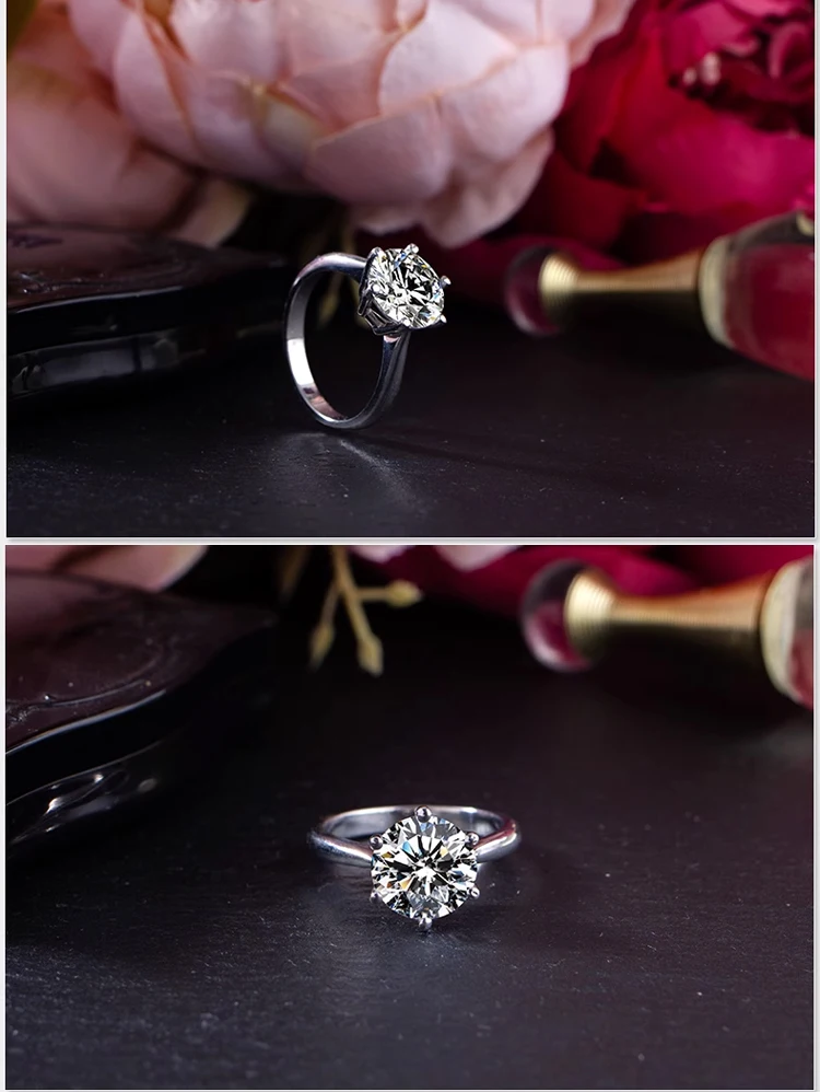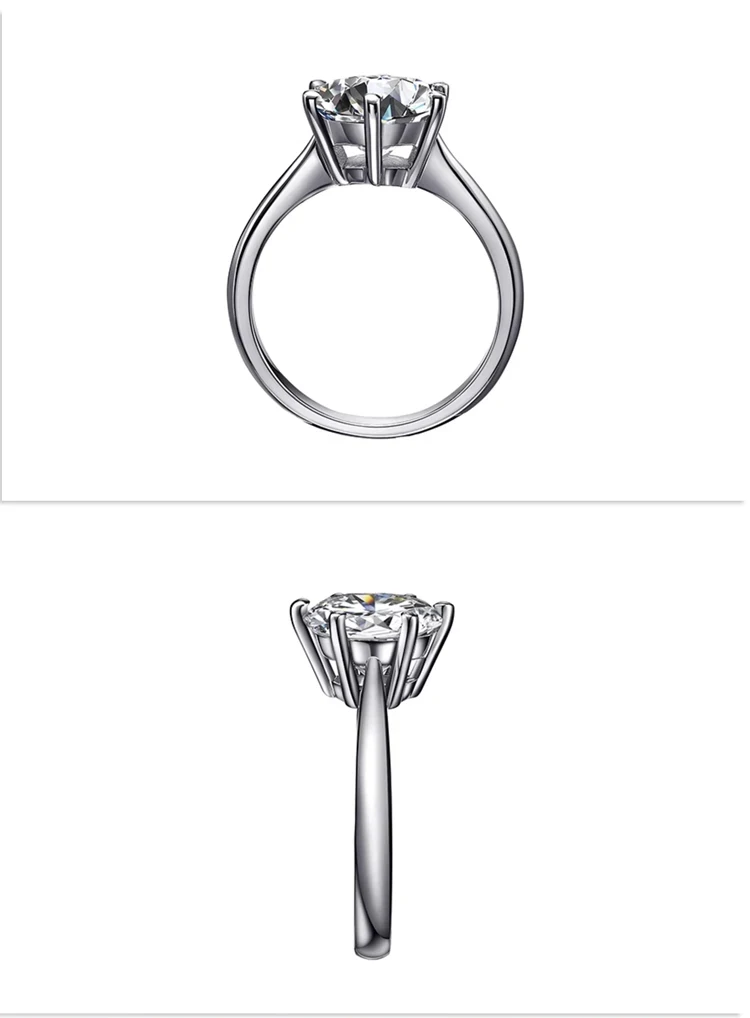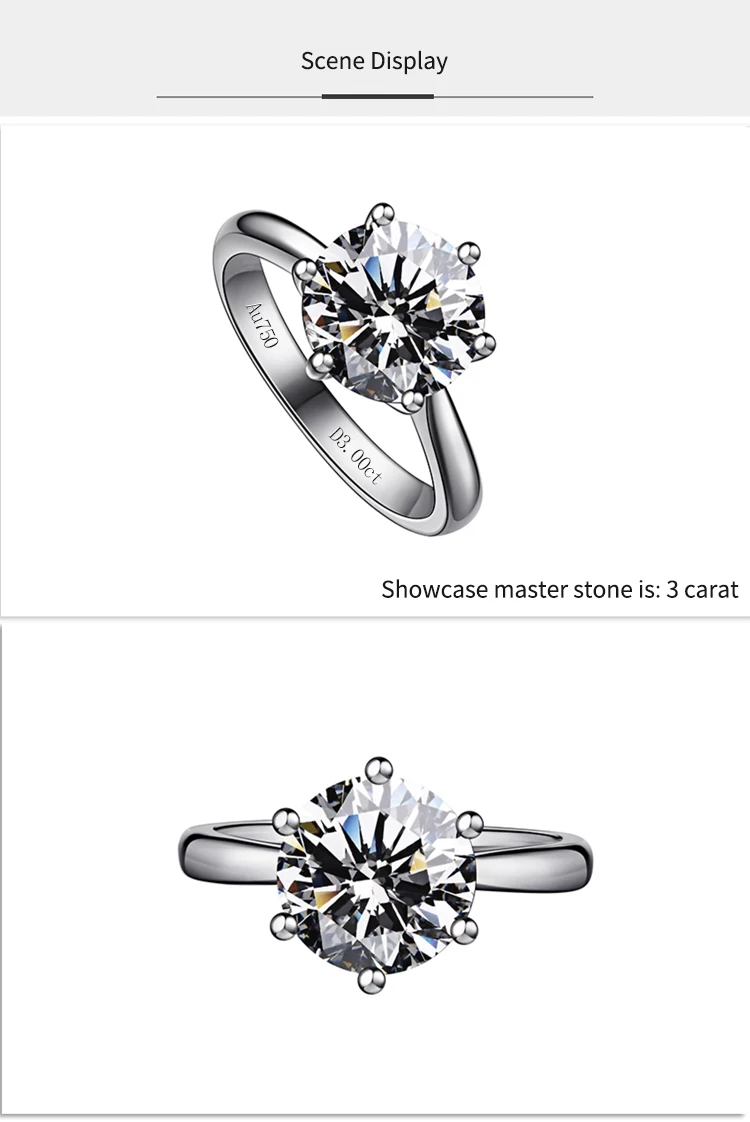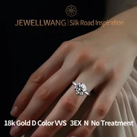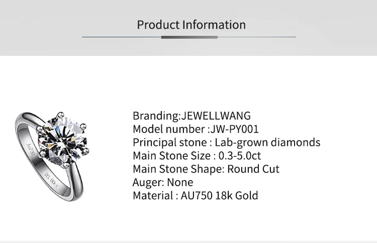 JEWELLWANG 18K Pure Gold Lab Grown Diamond Ring for Women 0.5-3.0ct D VVS Engagement/Wedding/6 Claws
