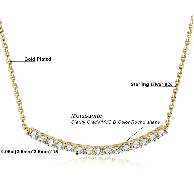JewelryPalace Moissanite D Color Total 0.9ct 925 Sterling Silver Necklace for woman Luxury Choker 45cm