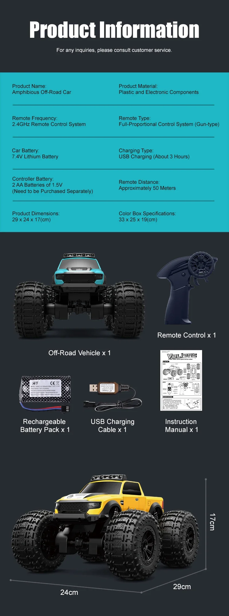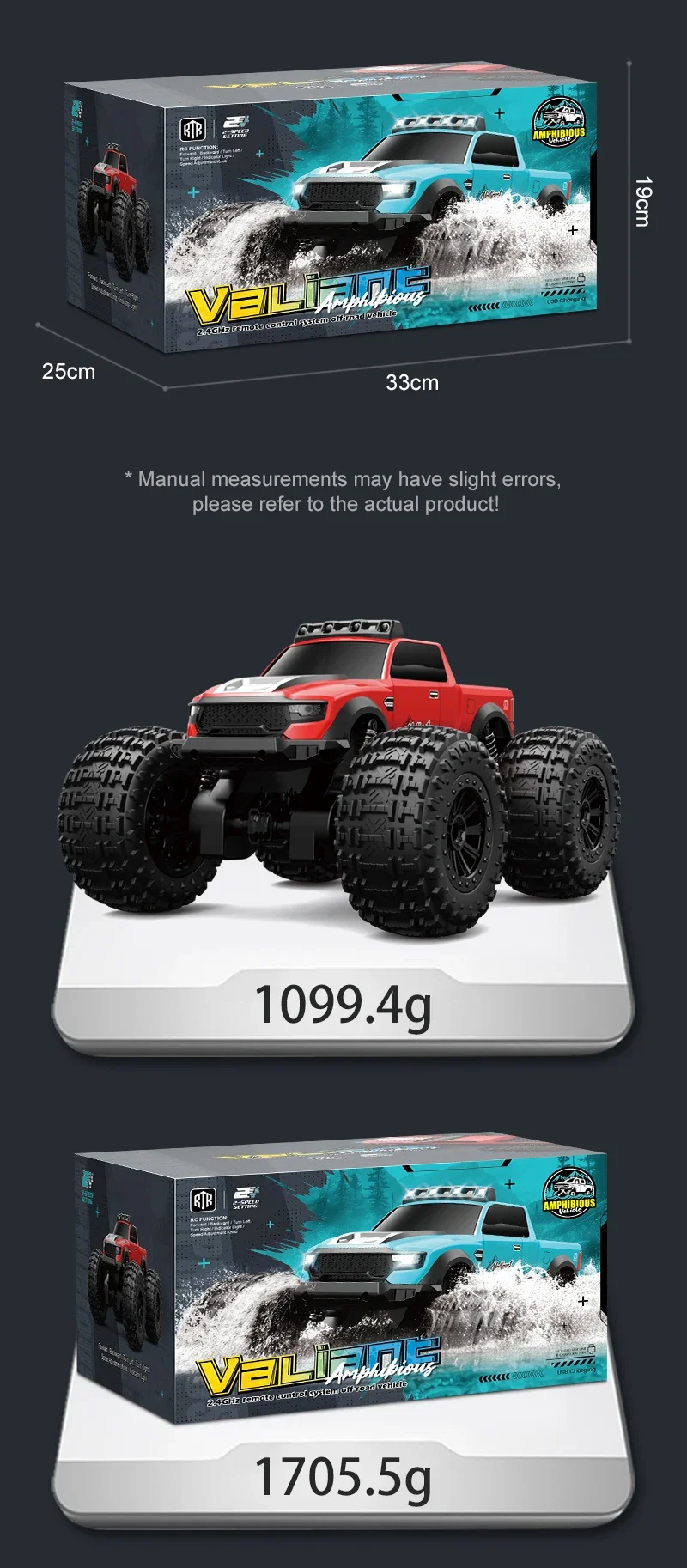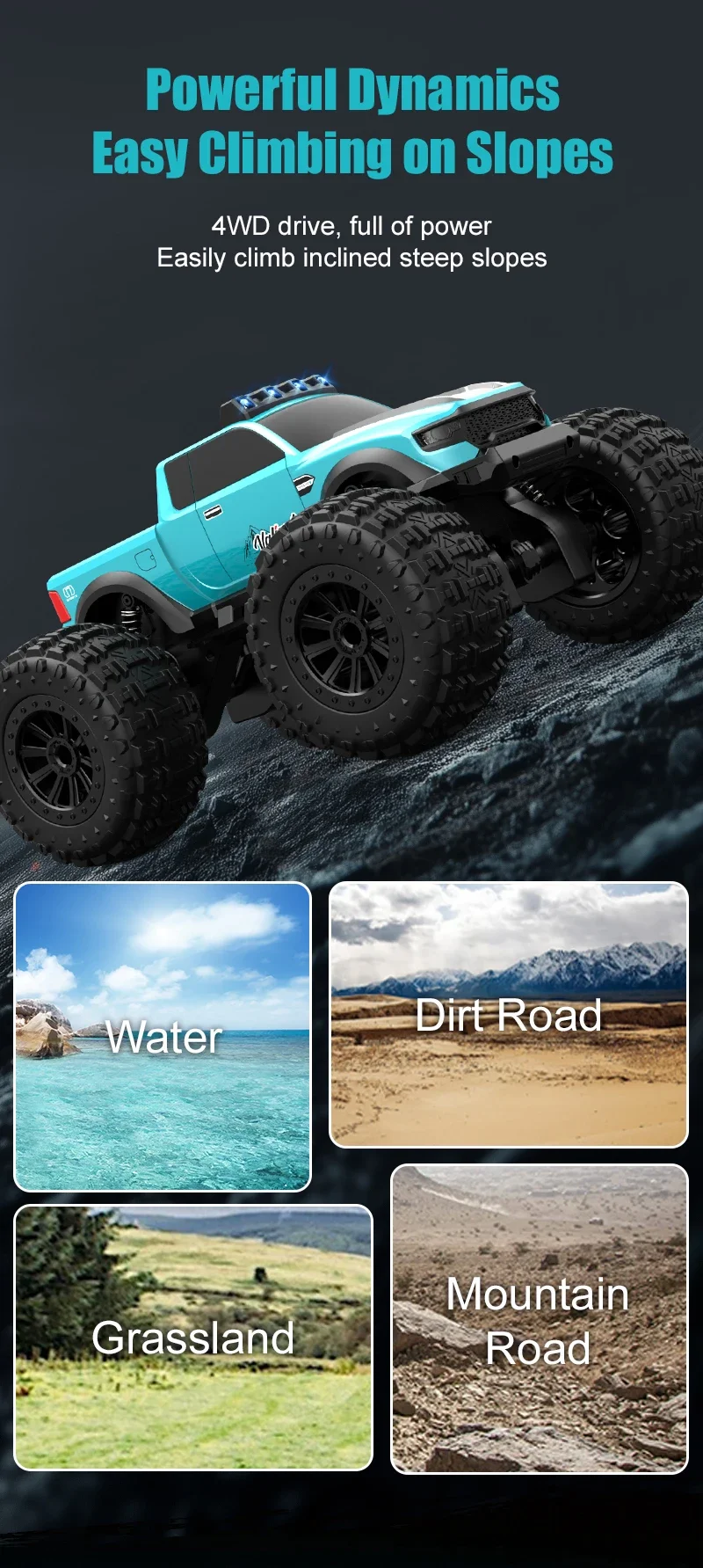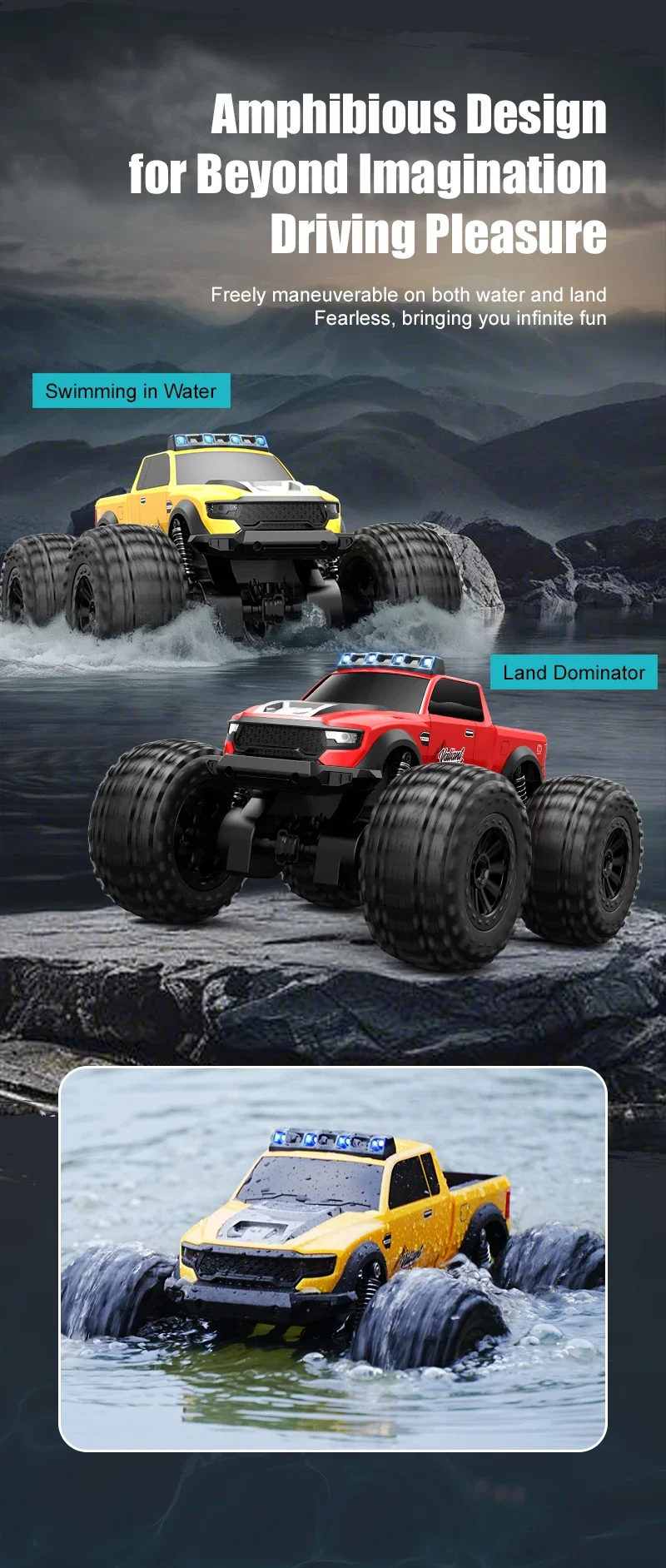 JHD For 2025 New JJRC C8816 Amphibious RC Car 4WD Off-Road Climbing Monster Truck with LED Light 4-wheeled Bigfoot Buggy C8816