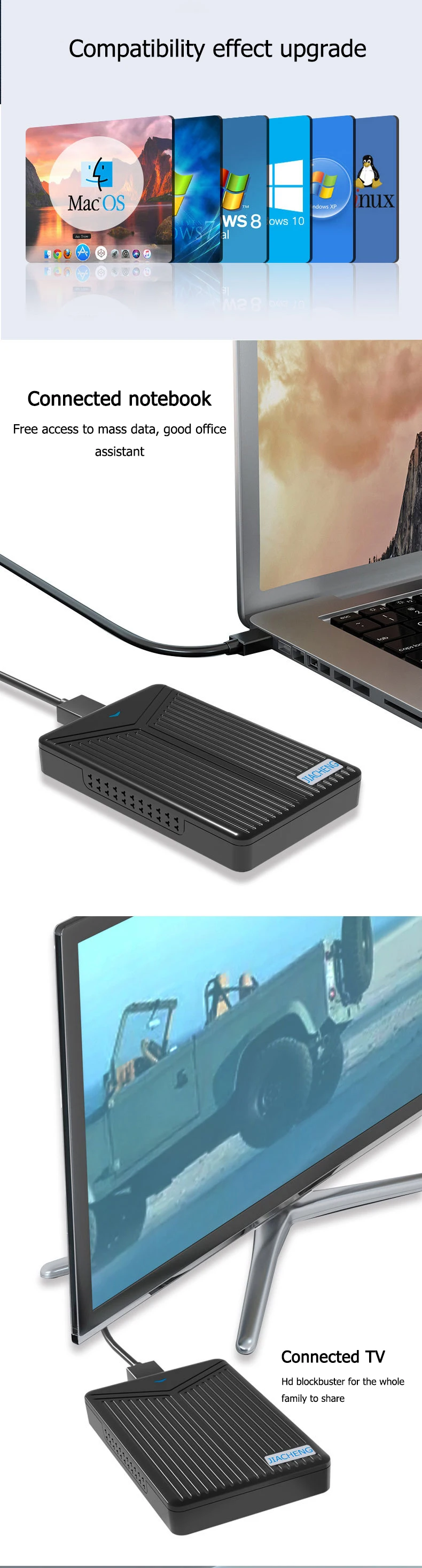 Transfer data at maximum speed with USB 3.0; USB 2.0 compatible