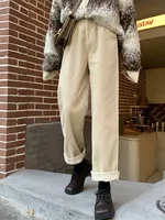 Thickened Fleece Lamb Velvet Casual Wide Leg Pants Women Autumn Winter New Style Corduroy Shiny Straight Tube Pants