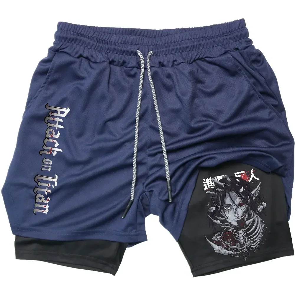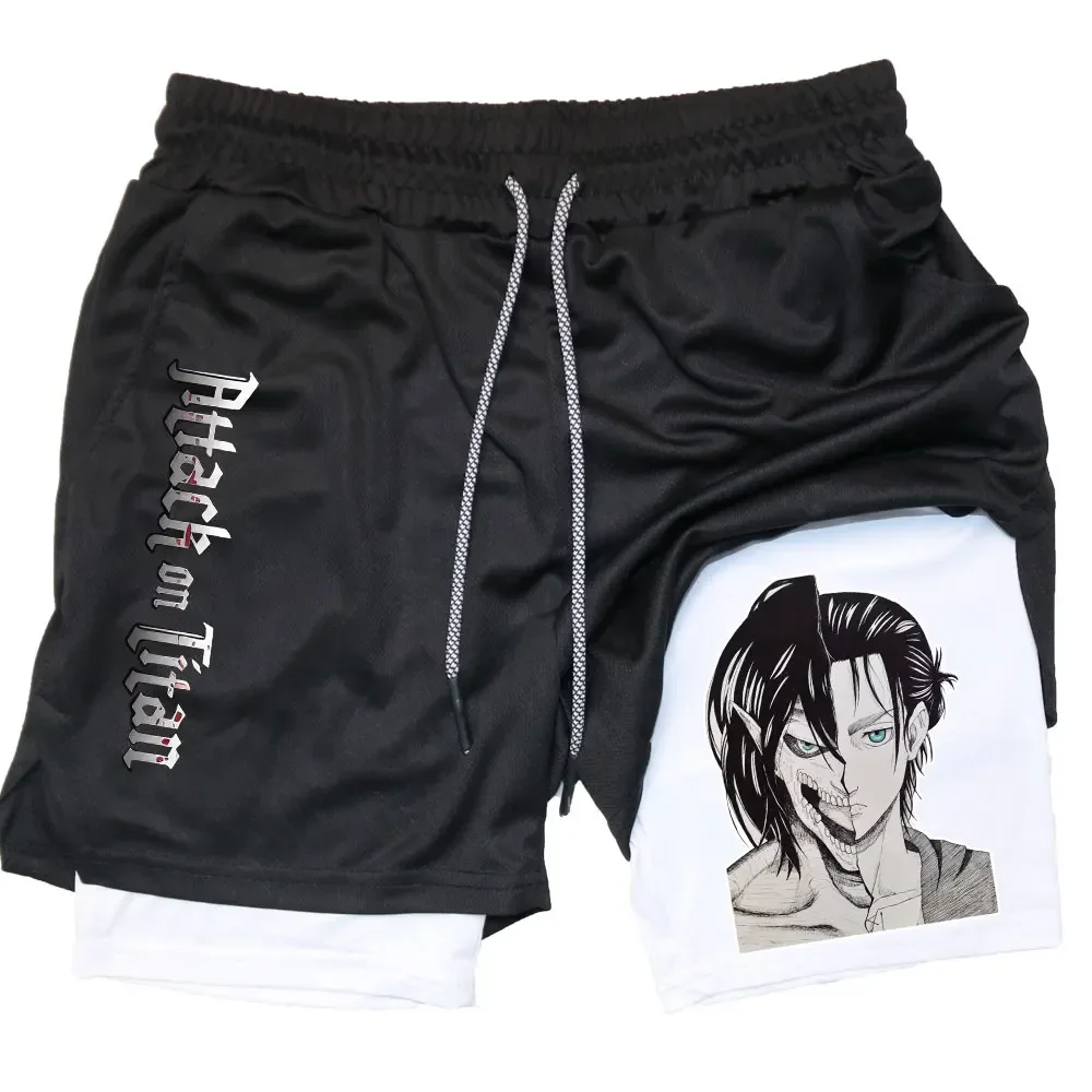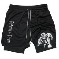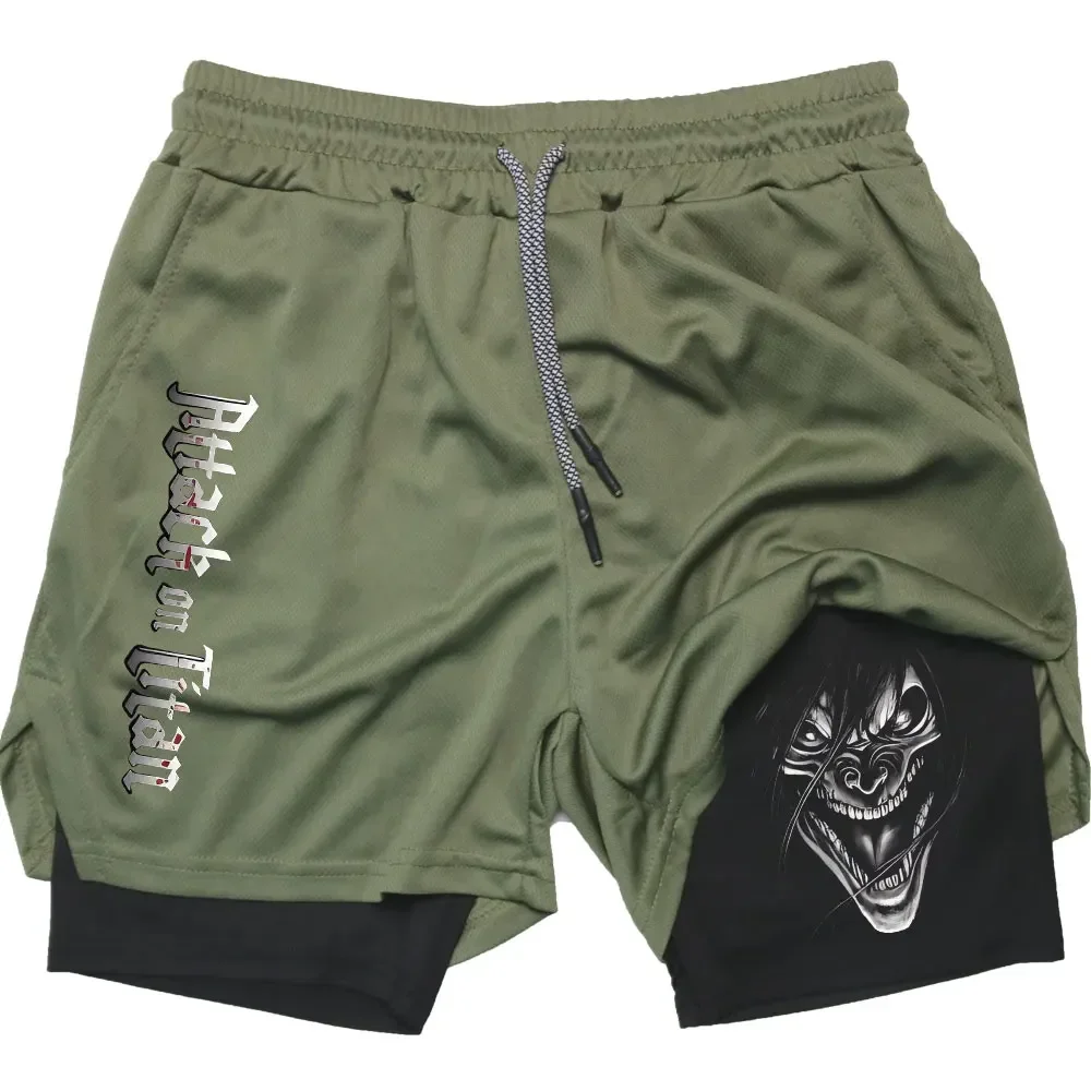 Joggings Shorts Men Performance Shorts Anime Attack on Titan Print Gym Shorts Summer Sports Fitness Workout