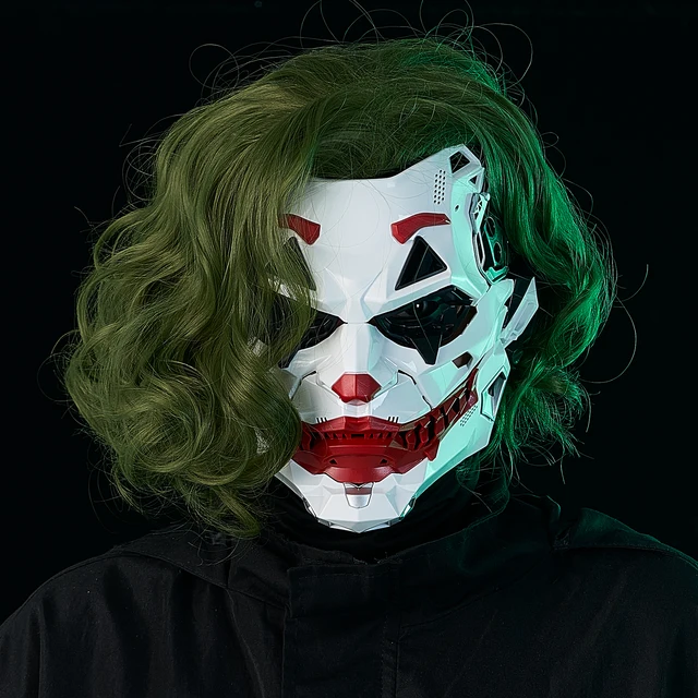 FUTURISTIC DESIGN: Striking geometric white and red mask with angular patterns creates a modern, avant-garde clown aesthetic perfect for cosplay and costumes