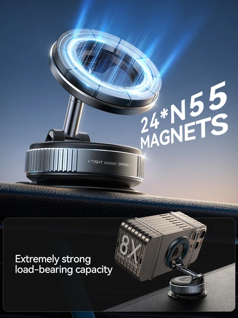 4.【Military-Grade Magnetic Force for Instant Attachment】Featuring 24 powerful N55 magnets in optimized layout, our magnetic phone holder for car secures devices up to 2.5lbs (even large Pro Max models) at lightning speed. The ultra-strong magnetic car phone mount keeps your phone stable during sharp turns. No more fumbling with clamps – just tap and go!