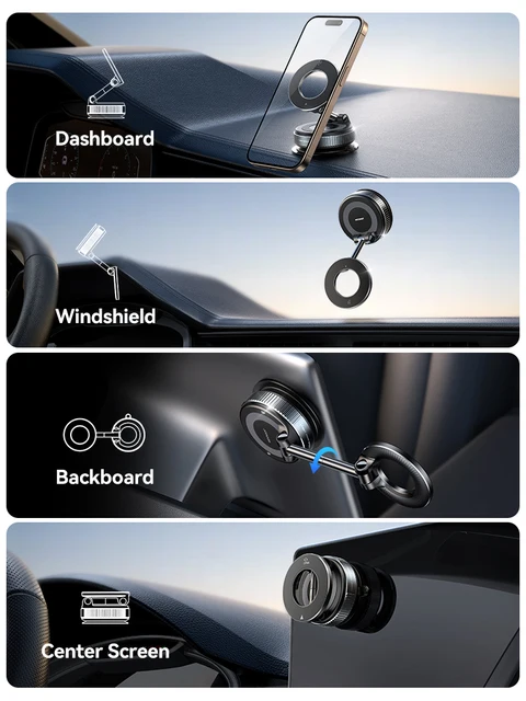 1.【Innovative Suction Cup Base with Unmatched Stability】Joyroom’s upgraded suction cup phone mount creates a vacuum seal that grips firmly on windshields, dashboards, or any smooth surface – even in extreme temperatures.It stays rock-solid through bumpy roads yet removes cleanly without residue.(Includes a free dashboard pad specifically designed for textured surfaces – simply attach your suction cup phone mount to this adhesive platform for rock-solid positioning on grainy dashboards).