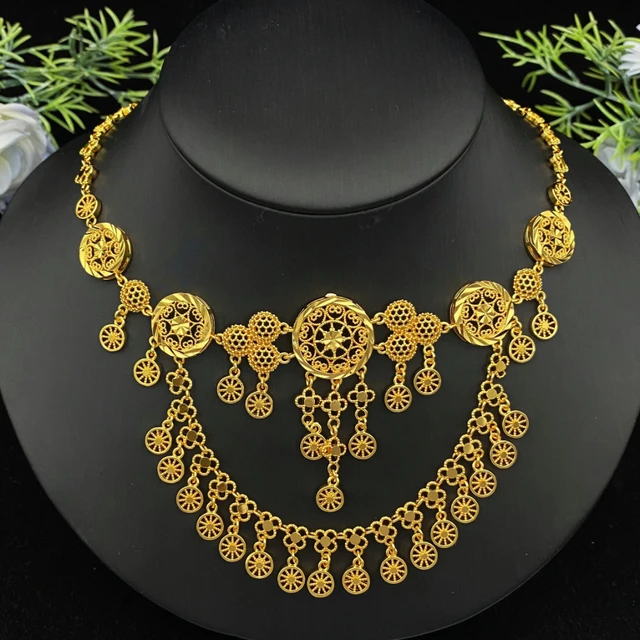 JRH Dubai Gold Plated Necklace Earrings Ring Bracelet Arabian Traditional Vintage Jewelry Women’s