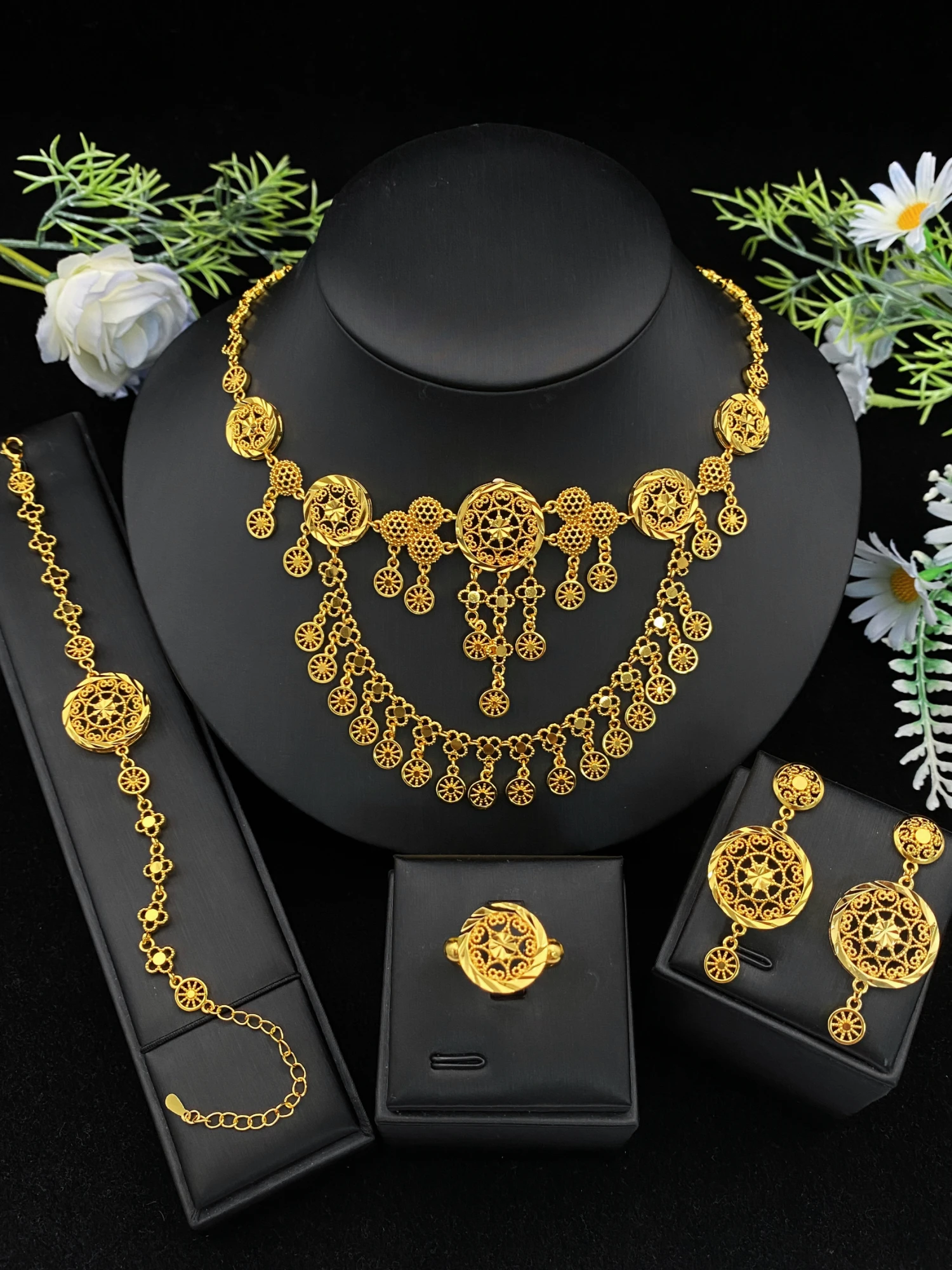 Luxury Women's Jewelry 4-Piece Set Necklace Earrings Ring Bracelet Fashion Gold Plated Gift for Dubai Saudi Women Party Jewelry