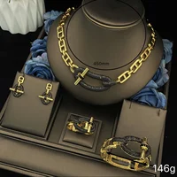 JRH Dubai Luxury Jewelry Set 4PC Jewellery Woman Gold Plated Sparkling Cubic Zirconia Necklace Earrings