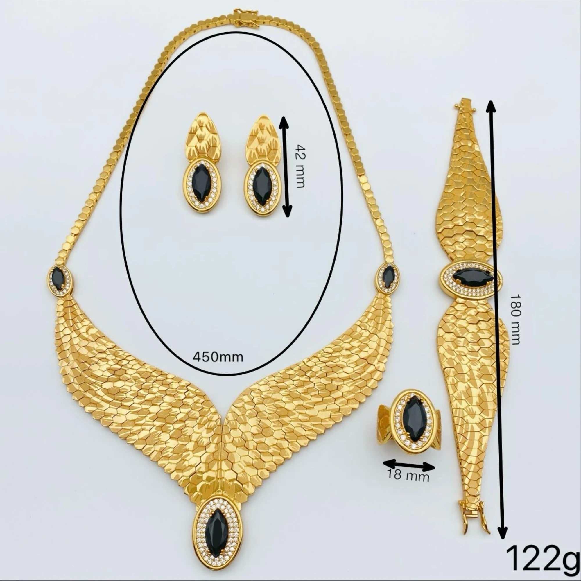 JRH Dubai Luxury Bridal Set – 4-Piece Laser-Cut Wing Jewelry With Red Zirconia African Wedding Collection Premium Bridal Gift