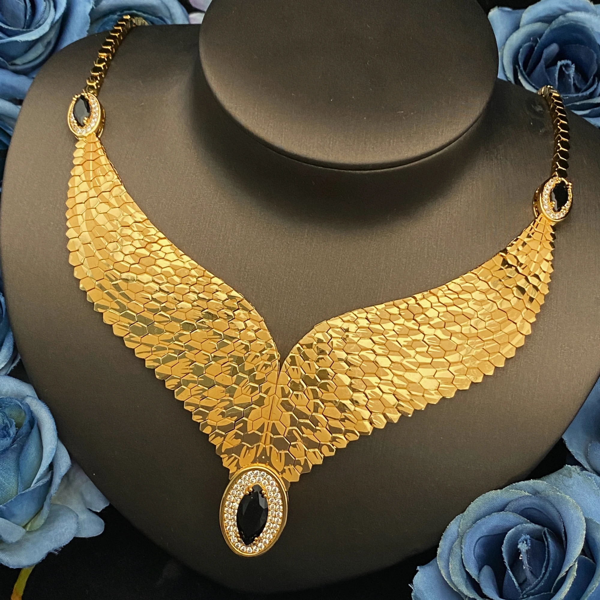 JRH Obsidian Wings Luxury Set – 4-Piece Laser-Engraved Black Zirconia Jewelry African Gothic Bridal