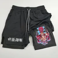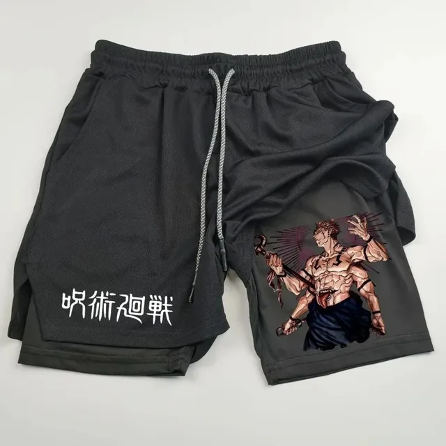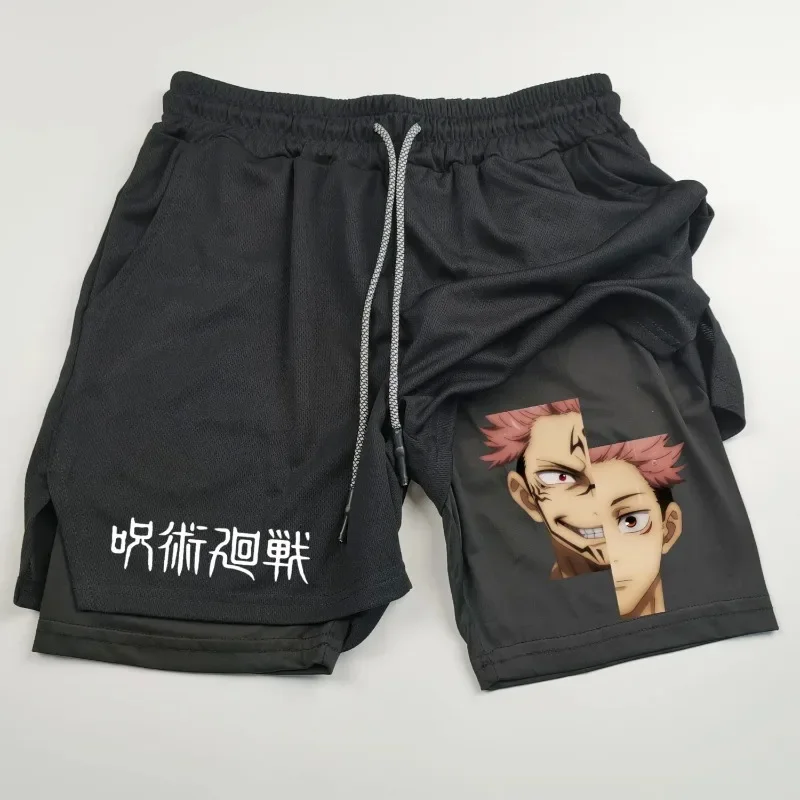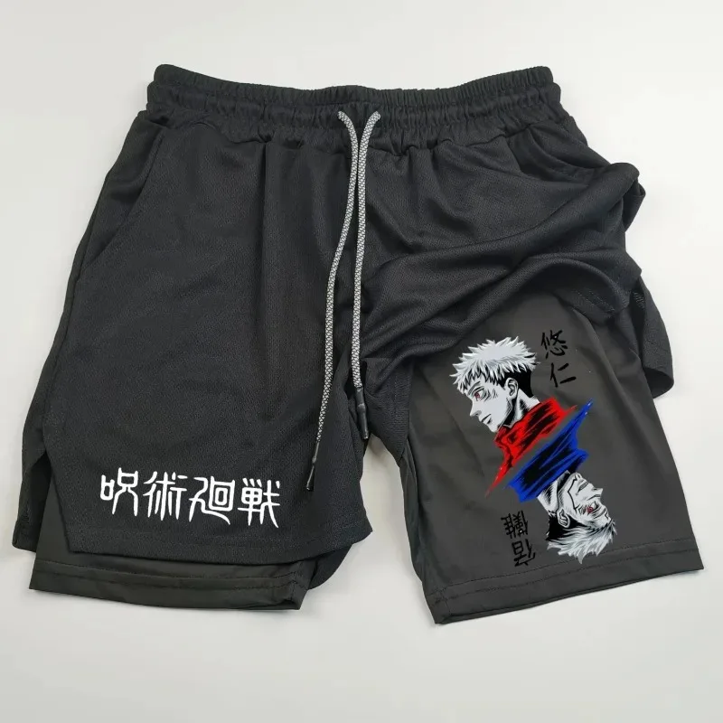 Jujutsu Kaisen Anime Graphic 2-in-1 Compression Shorts for Men Quick Dry Lightweight Gym Performance