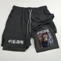 Jujutsu Kaisen Anime Graphic 2-in-1 Compression Shorts for Men Quick Dry Lightweight Gym Performance Shorts Athletic Activewear