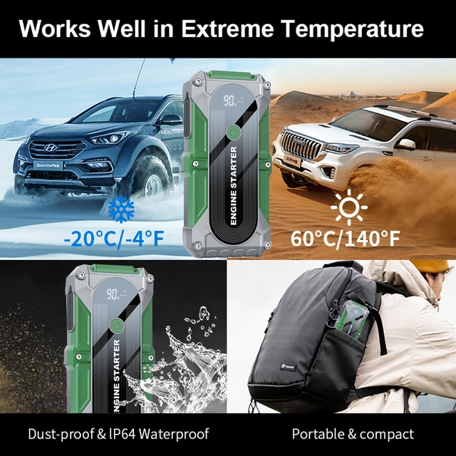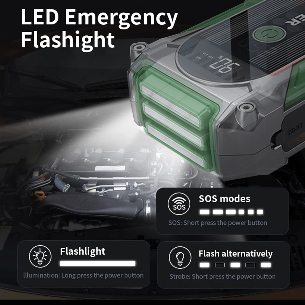 Jumper Car Starter 12V 2000A Multifunction Portable Power Bank Battery Booster LED Light for Emergency