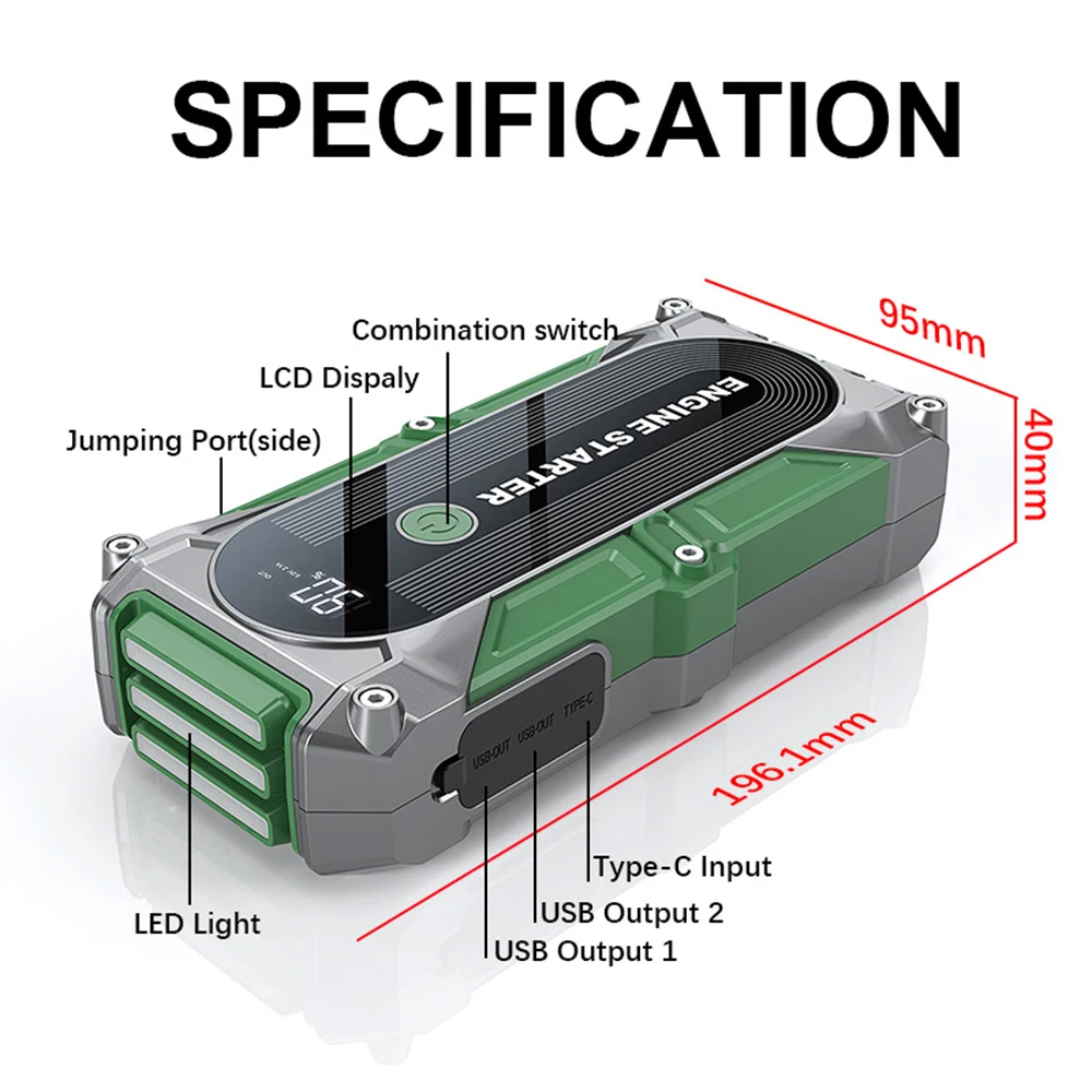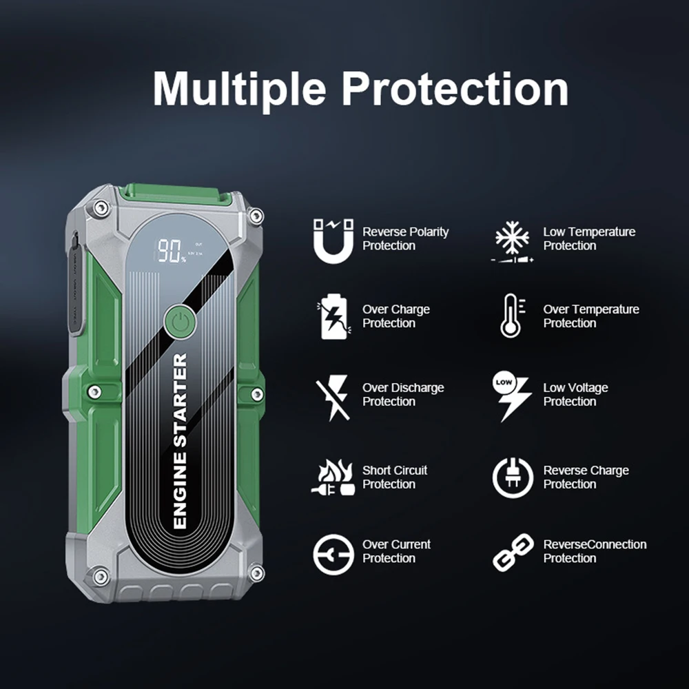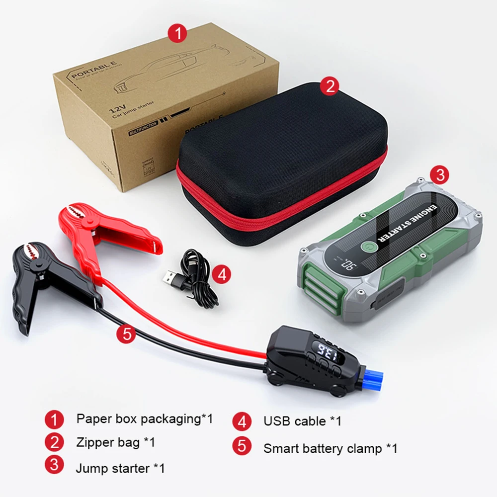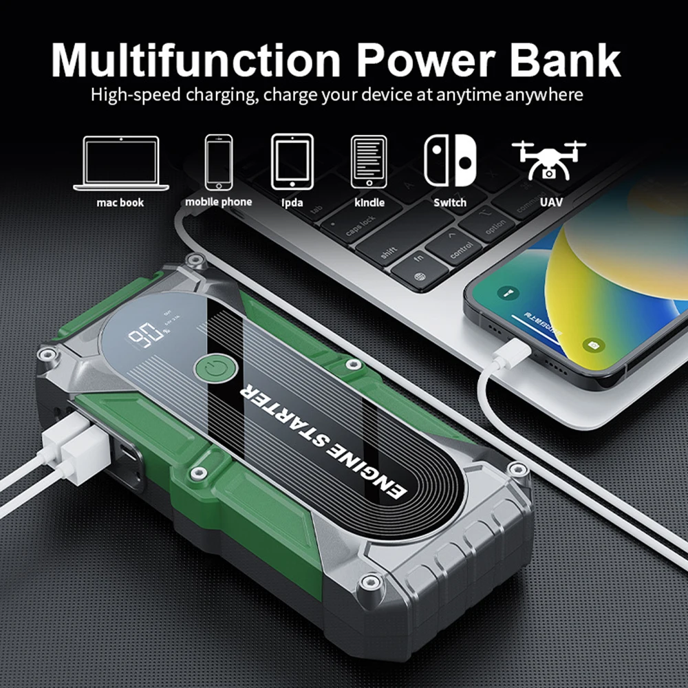 Jumper Car Starter 12V 2000A Multifunction Portable Power Bank Battery Booster LED Light for Emergency Truck Starts