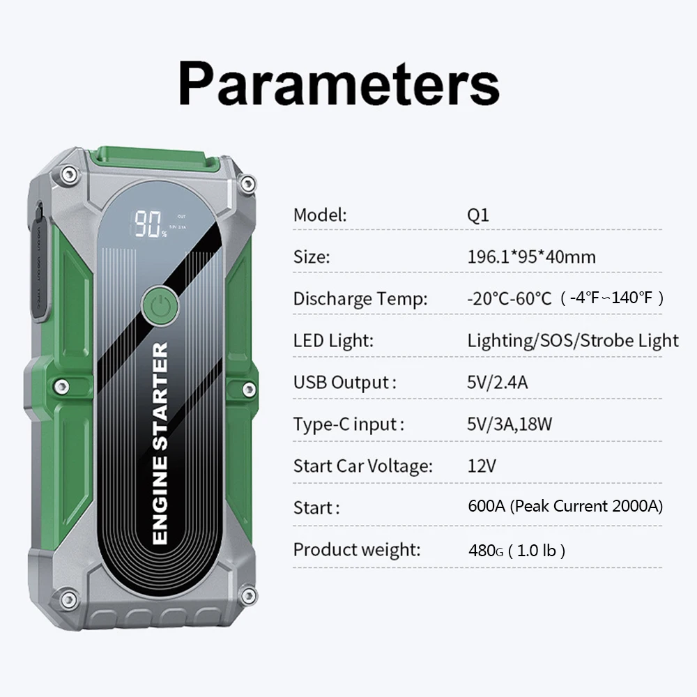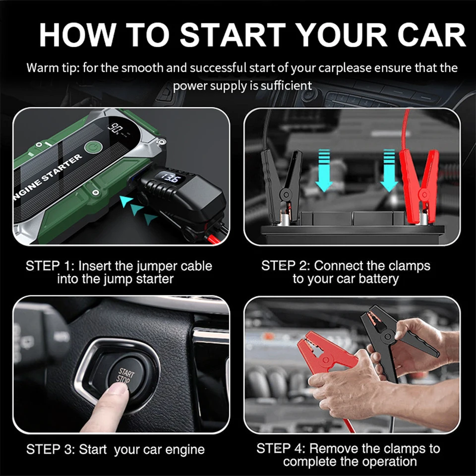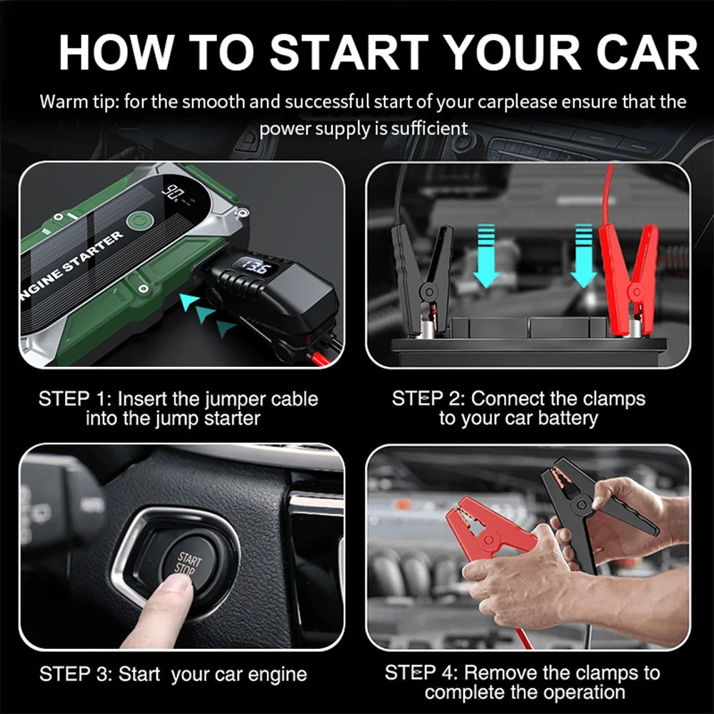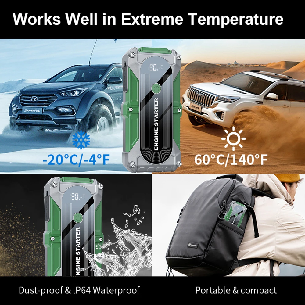 Jumper Car Starter 12V 2000A Multifunction Portable Power Bank Battery Booster LED Light for Emergency Truck Starts