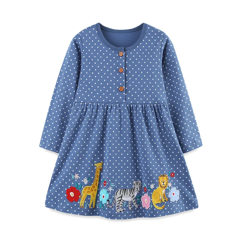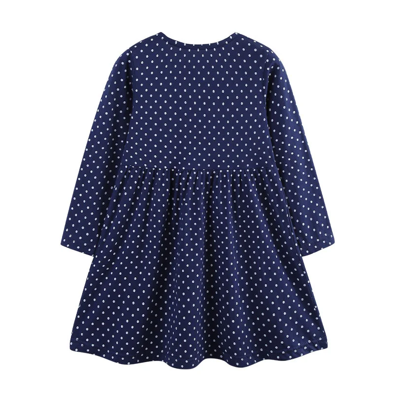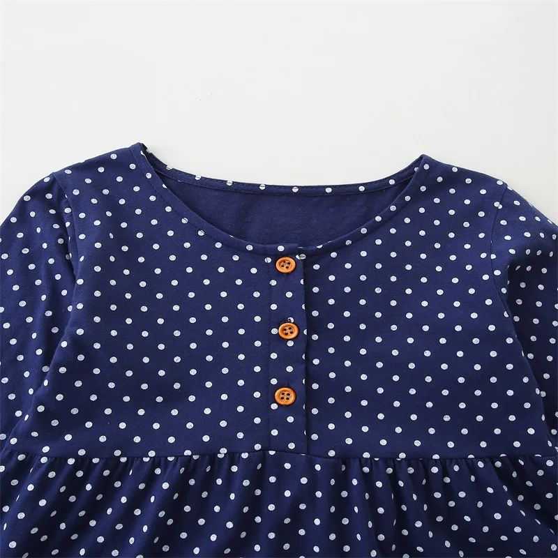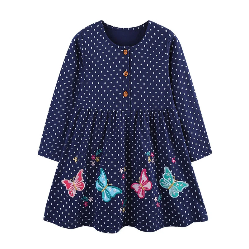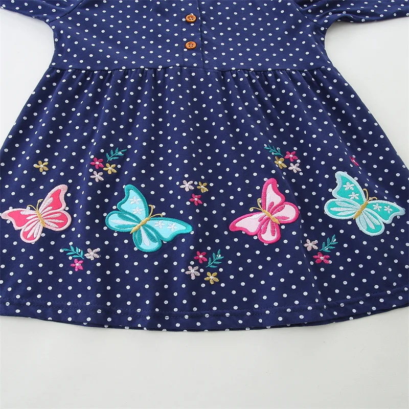 Jumping Meters 2-7T Long Sleeve Butterfly Embroidery Princess Girls Dresses Polka Dots Buttons Children’s
