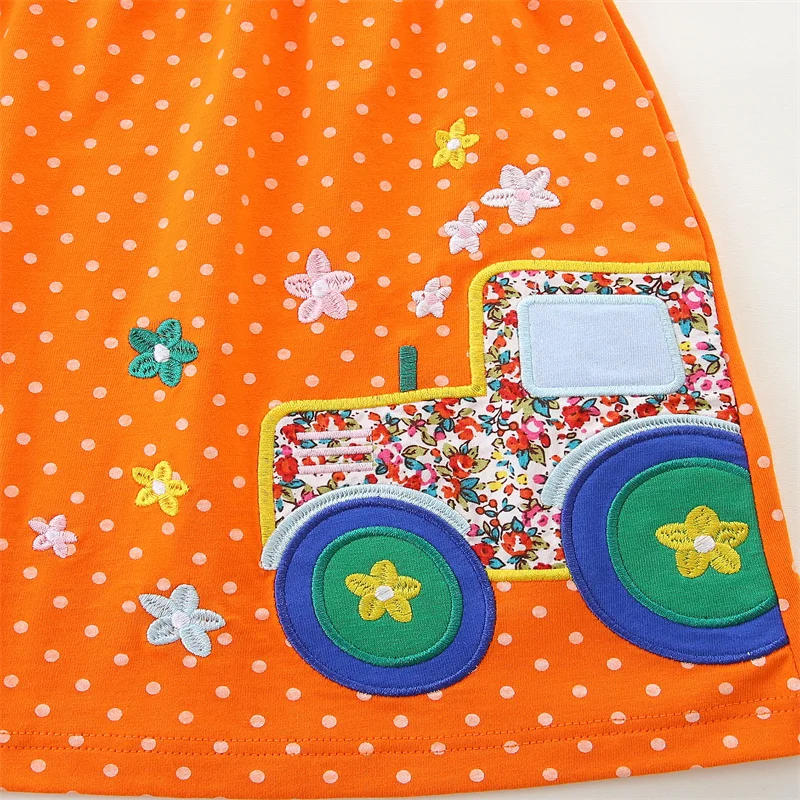 Jumping Meters 2-7T Long Sleeve Embroidery Polka Dot Princess Girls Dresses Truck Applique Children’s