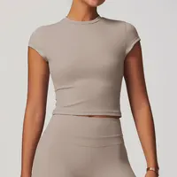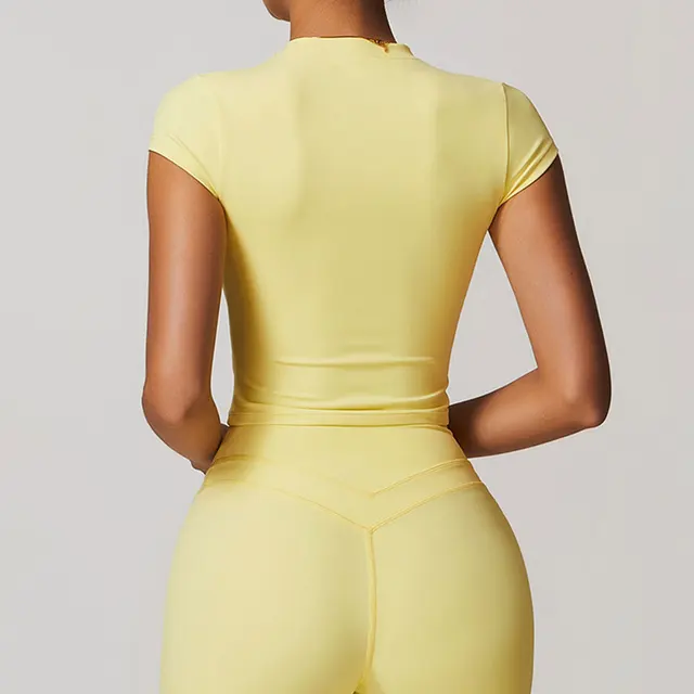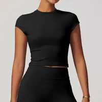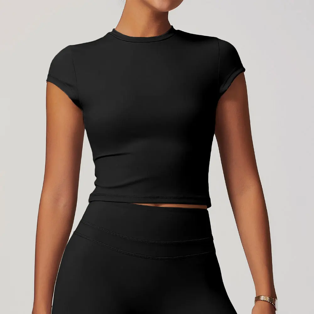 JUREN Women Clothes Yoga Top Sport T Shirt Fitness Clothes Short Sleeve Yoga Shirt Gym Top Workout Running