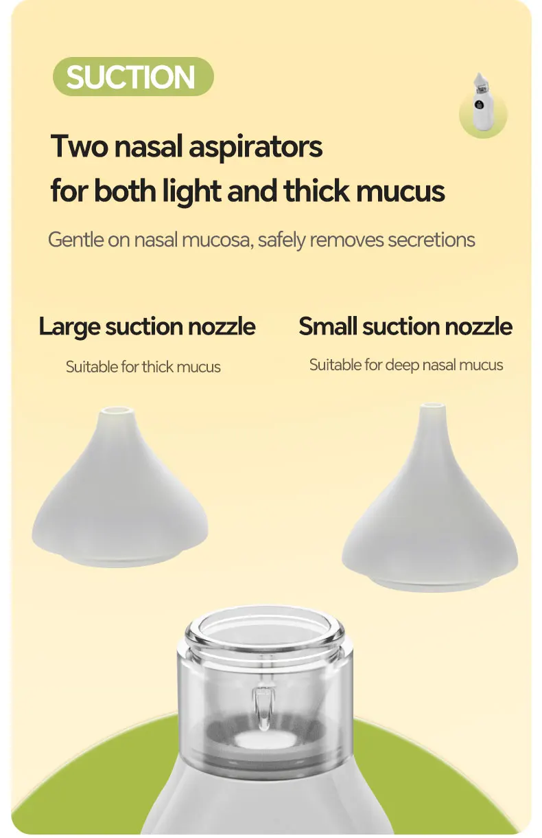 2. Equipped with food-grade silicone tips, the nose sucker for toddler is ultra-soft and safe, preventing any harm to your child’s delicate nose. The dual nozzle design (large + small) ensures efficient cleaning regardless of mucus depth.