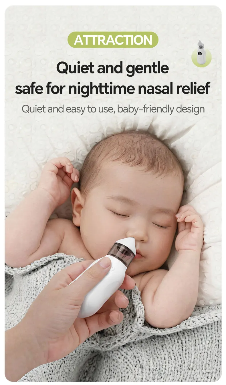 4. Designed for quiet operation, the mucus remover for toddlers runs at low noise levels, ensuring peaceful nighttime use without disturbing your child’s sleep. Gentle suction keeps your toddler calm and happy.