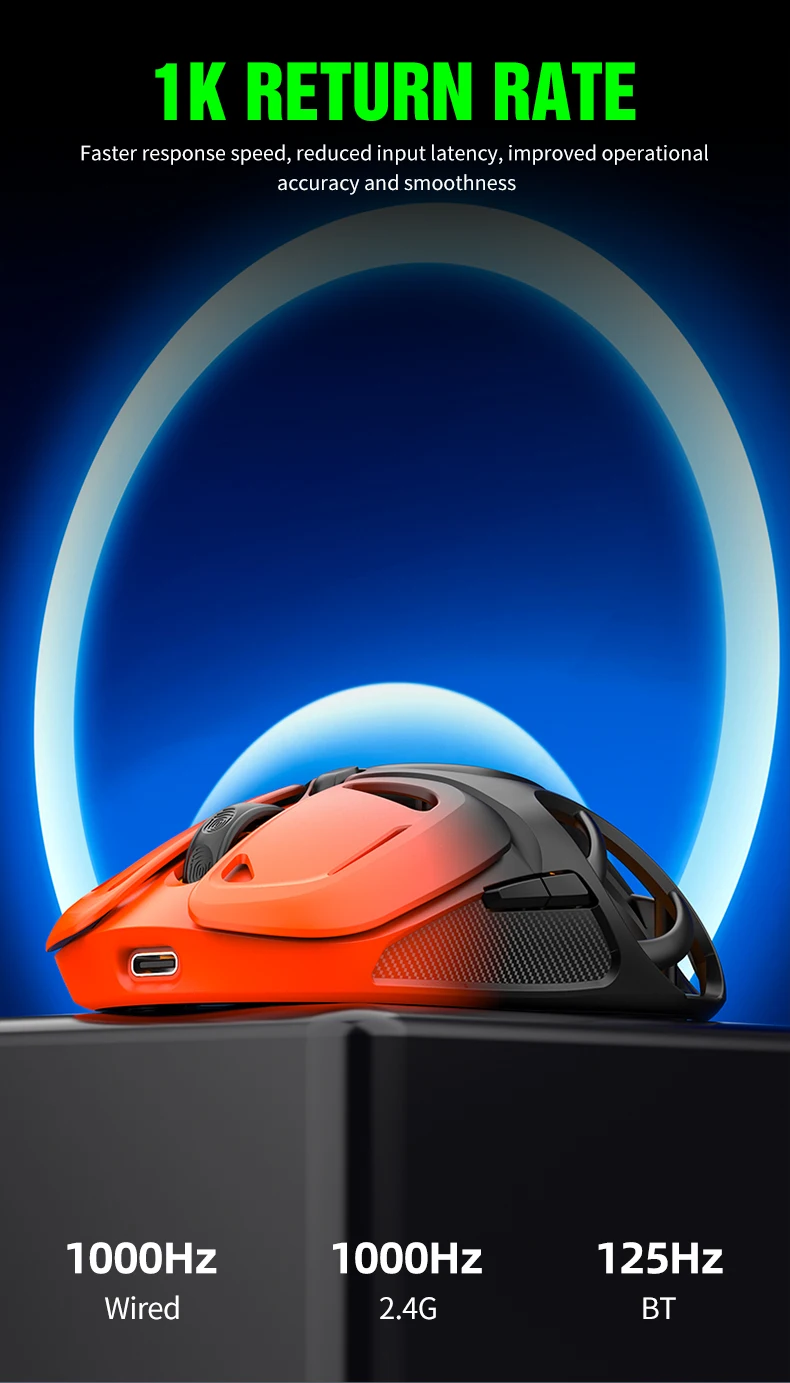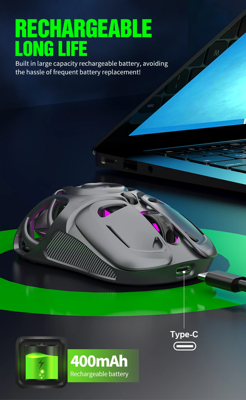 XUNFOX H16PRO Wireless mouse, three-mode connection 2.4GHz/ wired/Bluetooth 1000HZ 12000DPI RGB magnetic charging dock mouse