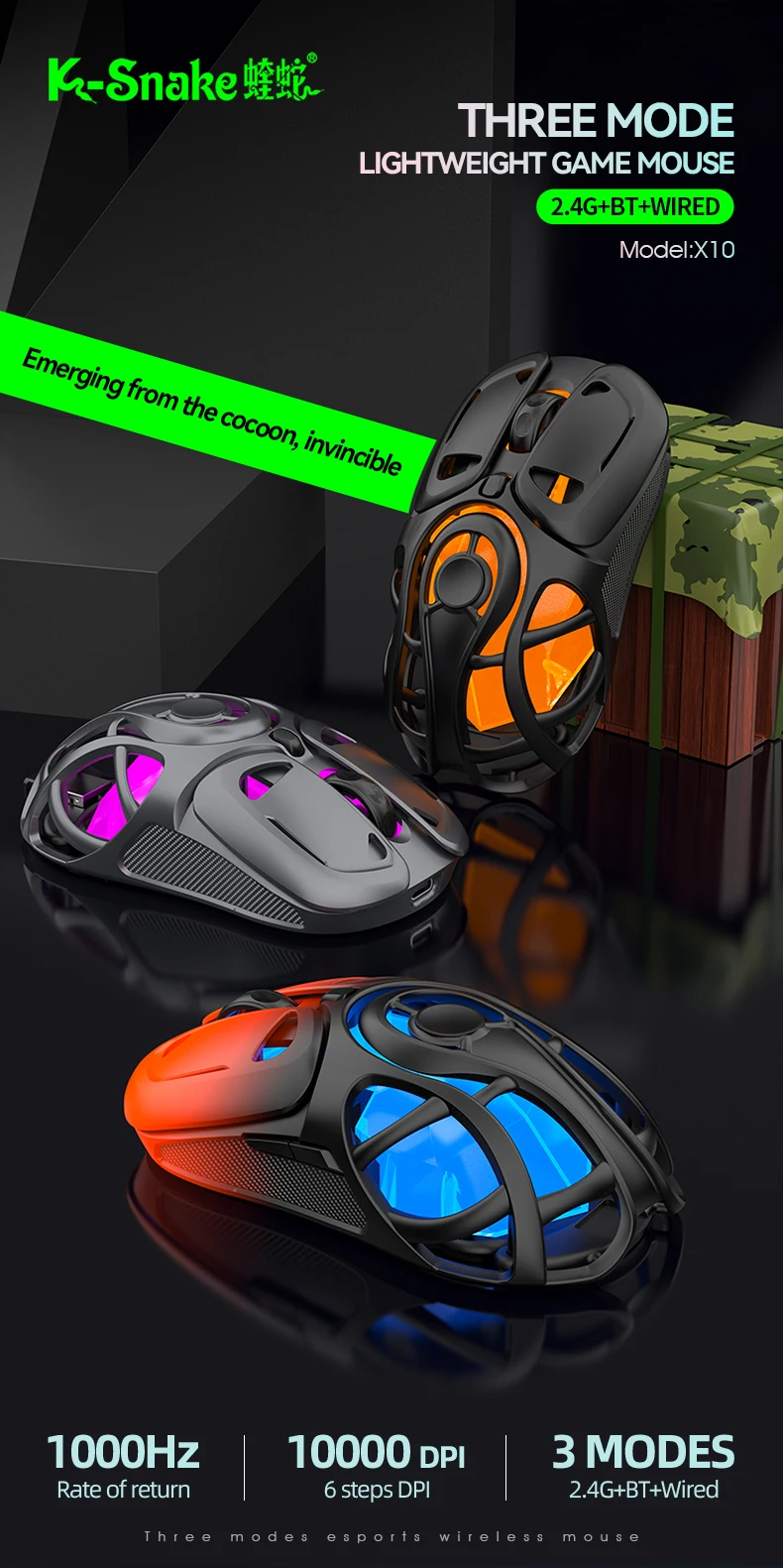 K-sanke X10 Bluetooth wireless three-mode mouse hollow lightweight gaming pen R laptop desktop gaming