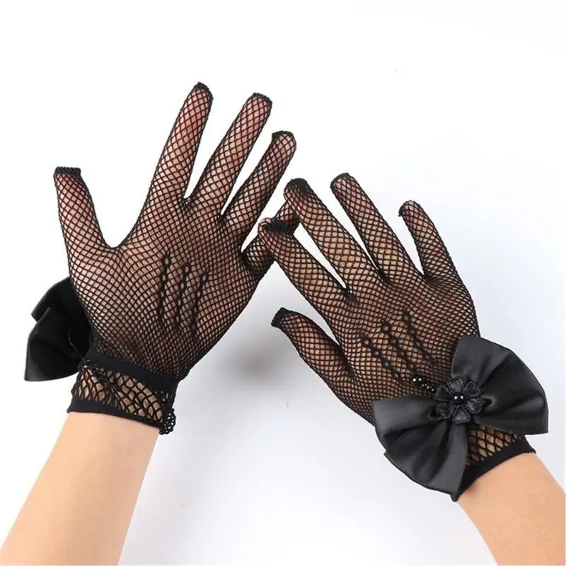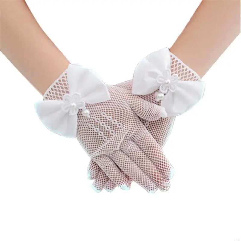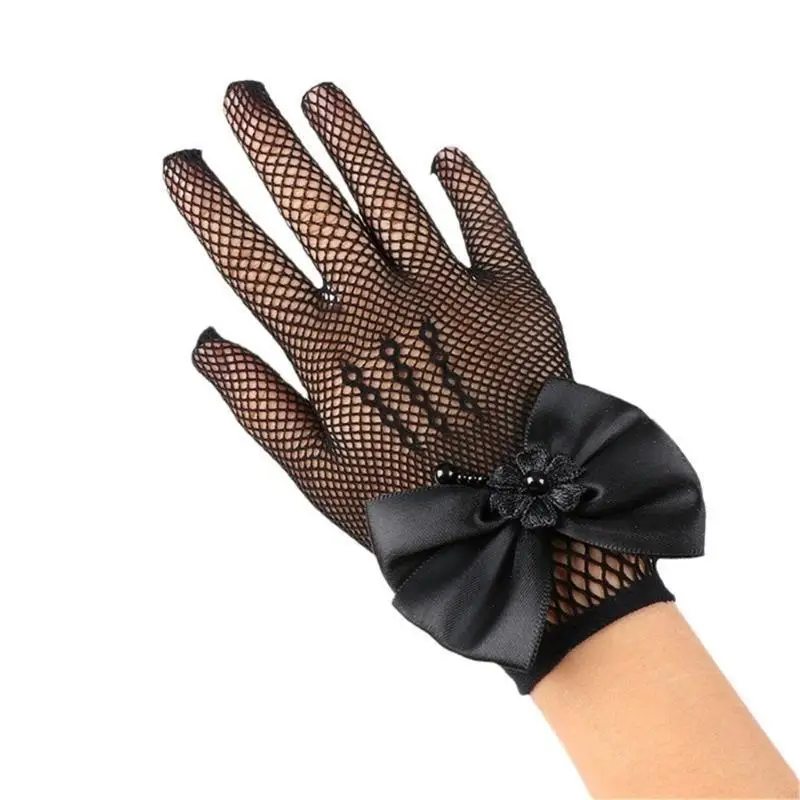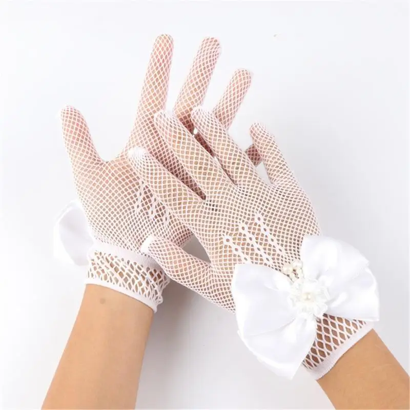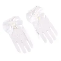 Craft from soft nylon and adorned with intricated lace and faux pearls detail, these gloves ensure both comfort and aesthetic appeal during wear.