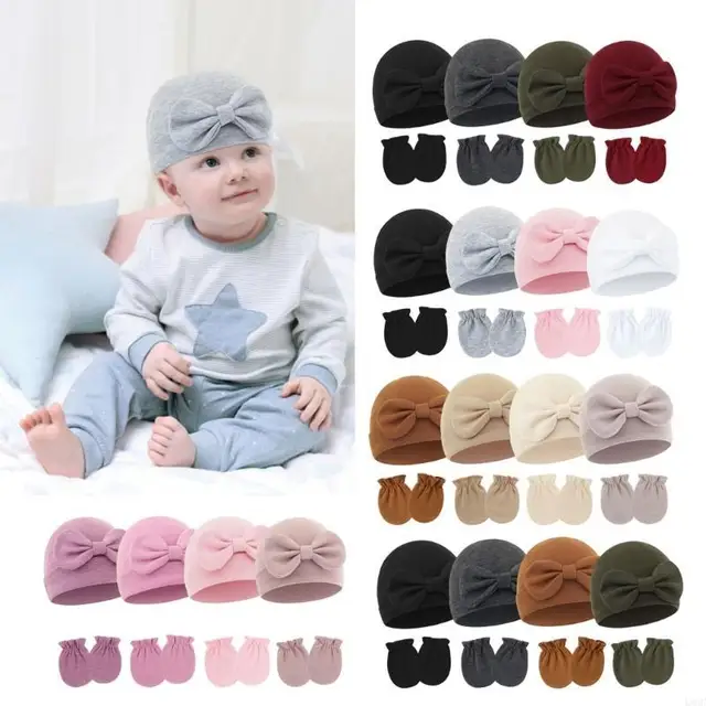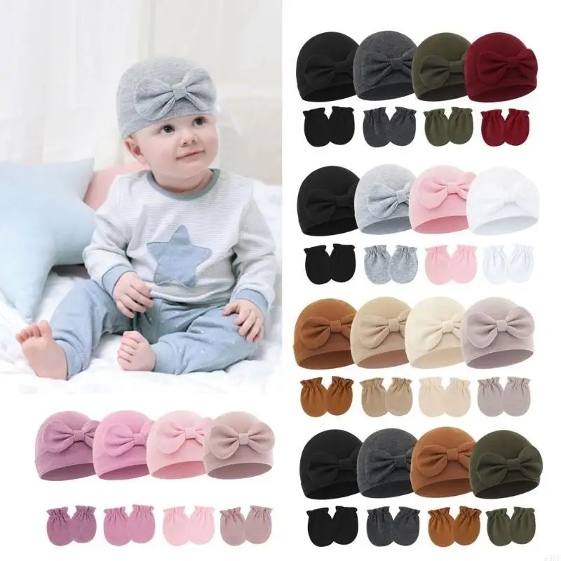 Baby hat, newborns fetal hat, 2025 spring hospital caps for infants, boys girls bonnet hat, brimless hat with matching anti-grab gloves.