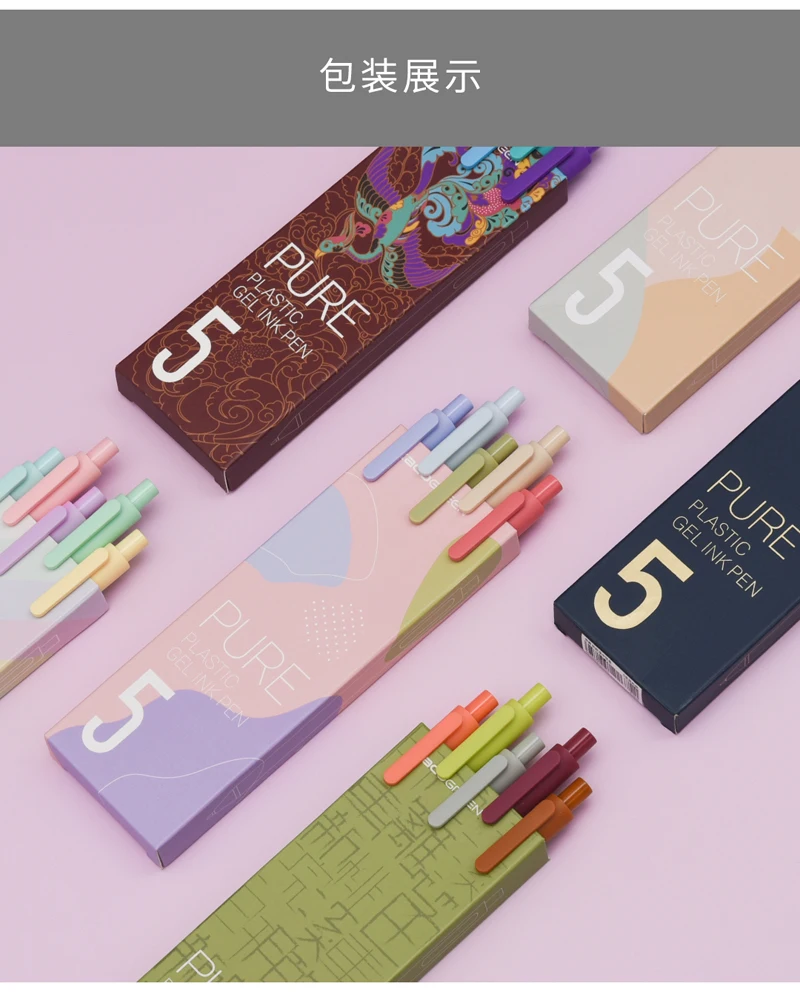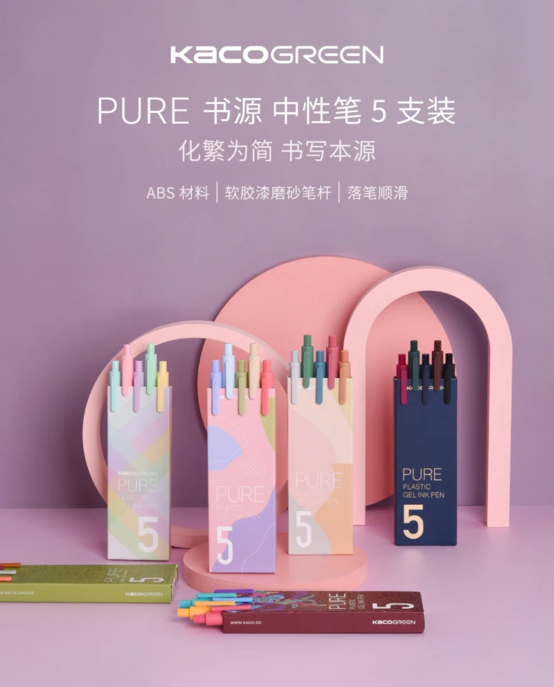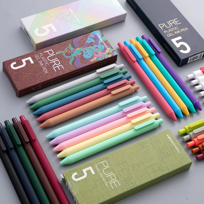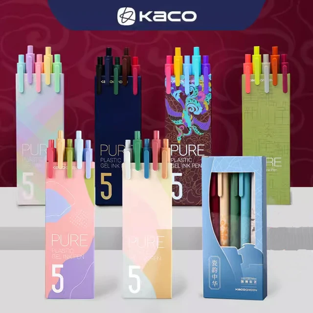 Kaco PURE Retractable Gel Ink Pen,5-Pack of Assorted Color Ink Refills,0.5mm Extra Fine Point, Coloured