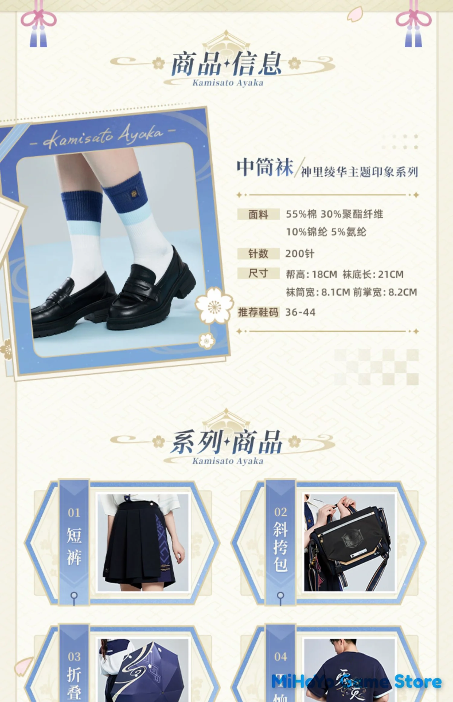 Kamisato Ayaka Socks MiHoYo Original Official Genshin Impact Daily Costumes Quadratic Theme Impression