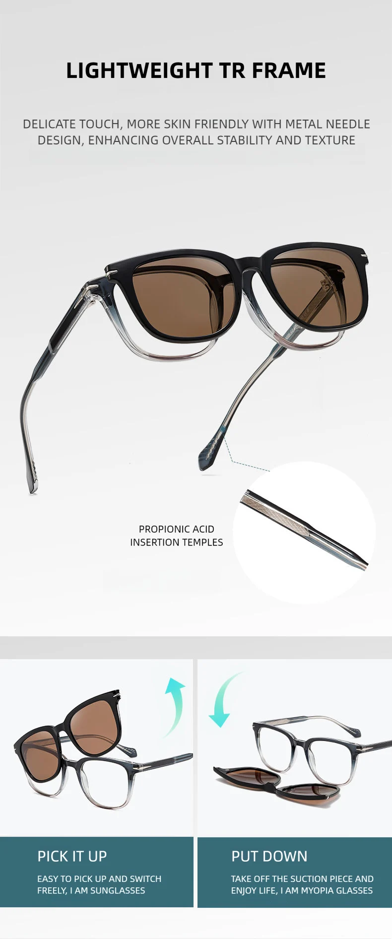 KANSEPT Square Men Sunglasses Women Reading Glasses Magnetic Clip-on Eyeglasses Women’s Eyeglass Frame Lunettes Myopia Lenses