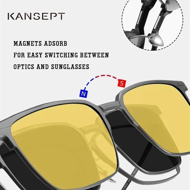 KANSEPT Titanium 3 In 1 Magnet Clip Optical Myopia Glasses For Men Polarized Sunglasses Hyperopia Prescription Reading Glasses