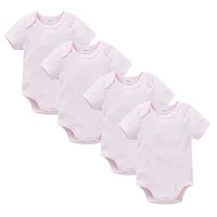 Kavkas 4 Pcs/lot Baby Girls Boys Bodysuit 0-24 Months Short Sleeve 100% Cotton Solid White Newborn Clothing