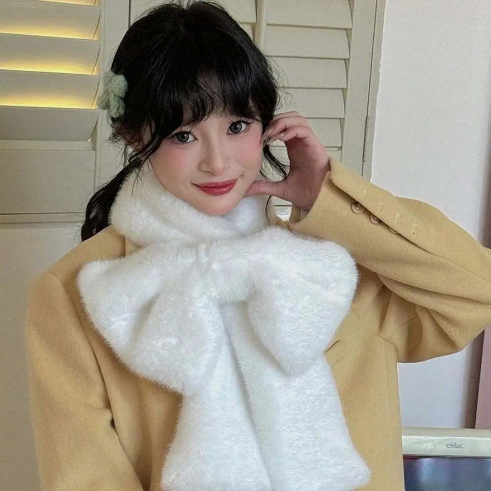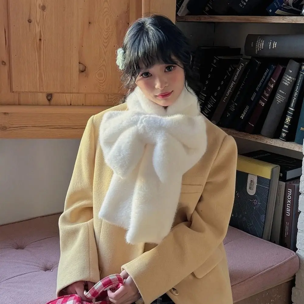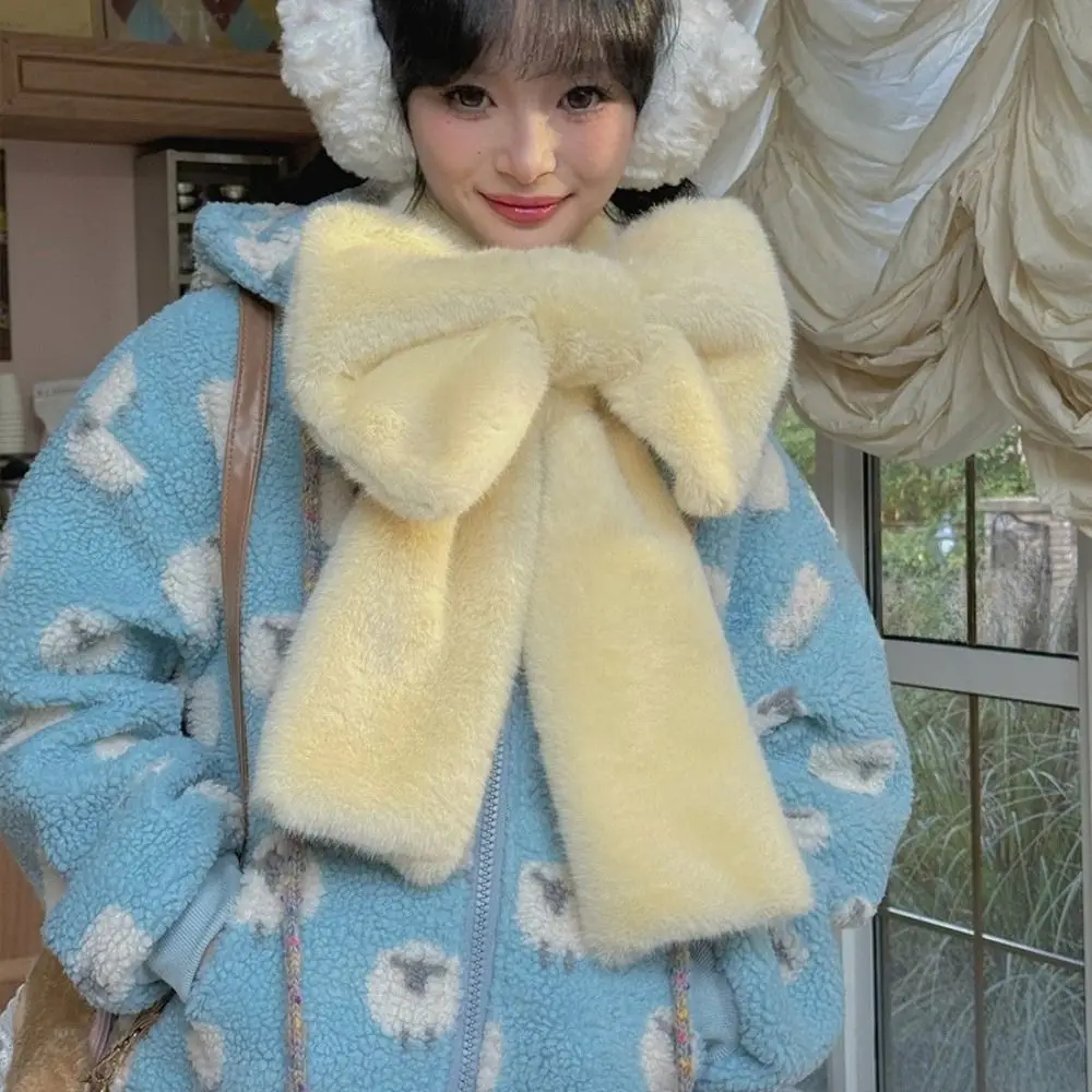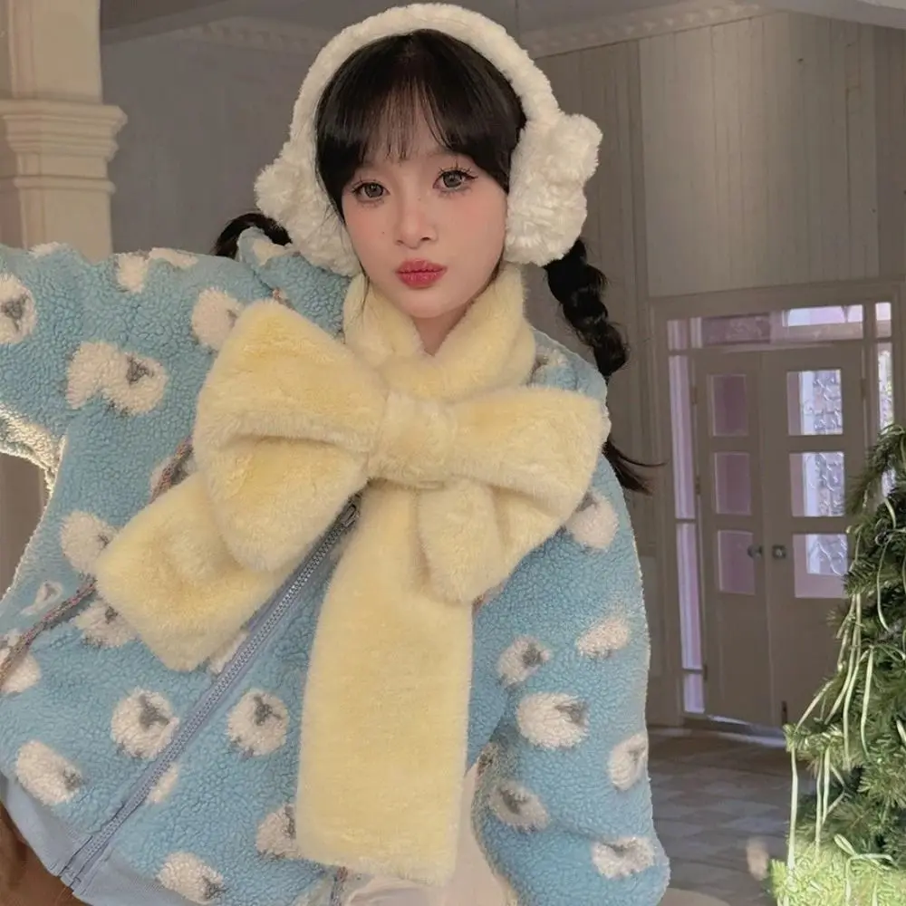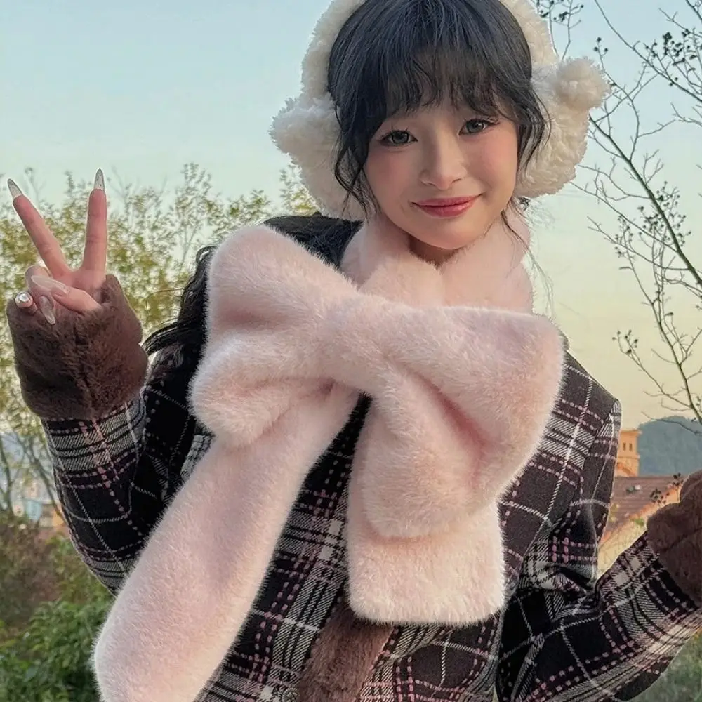 Kawaii Big Bow Scarf Windproof Thicken Neck Scarf Solid Color Wool Neckerchief Warmer Stuff Gifts