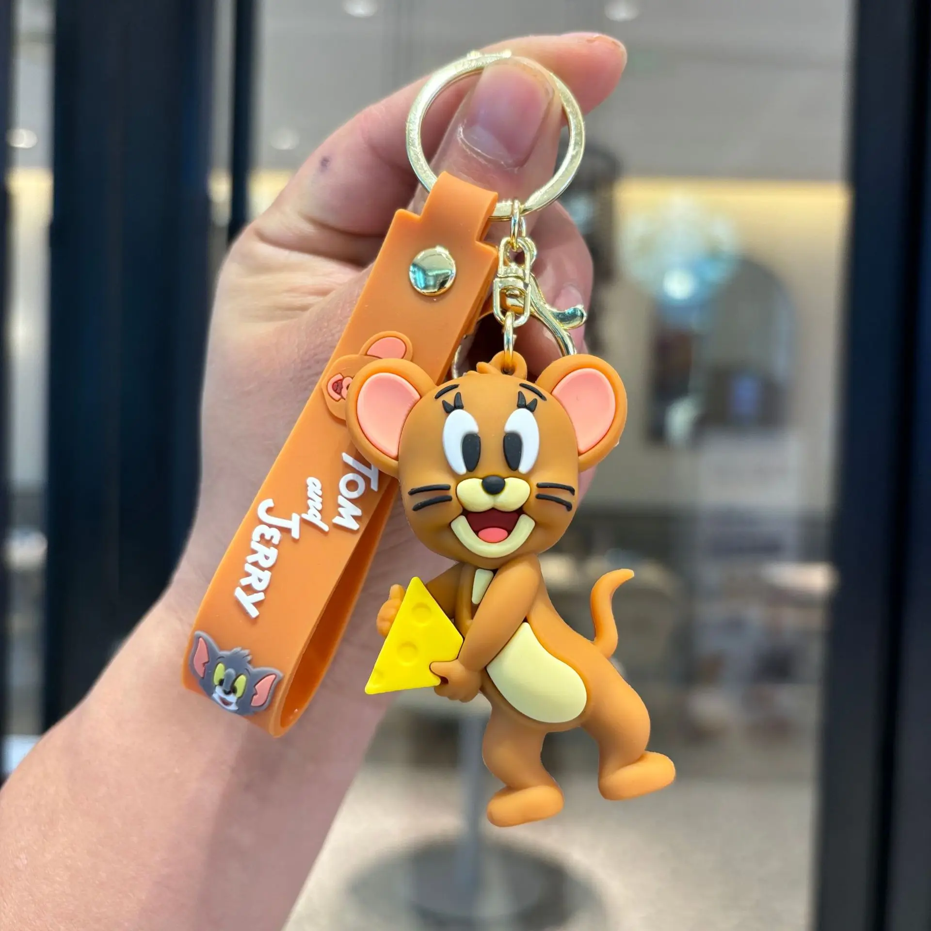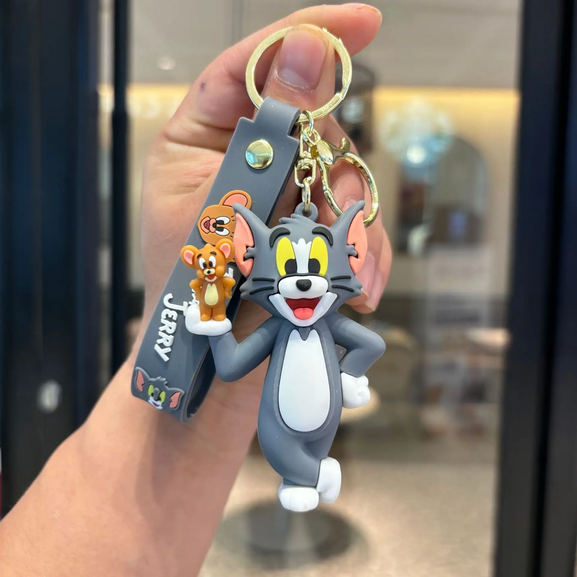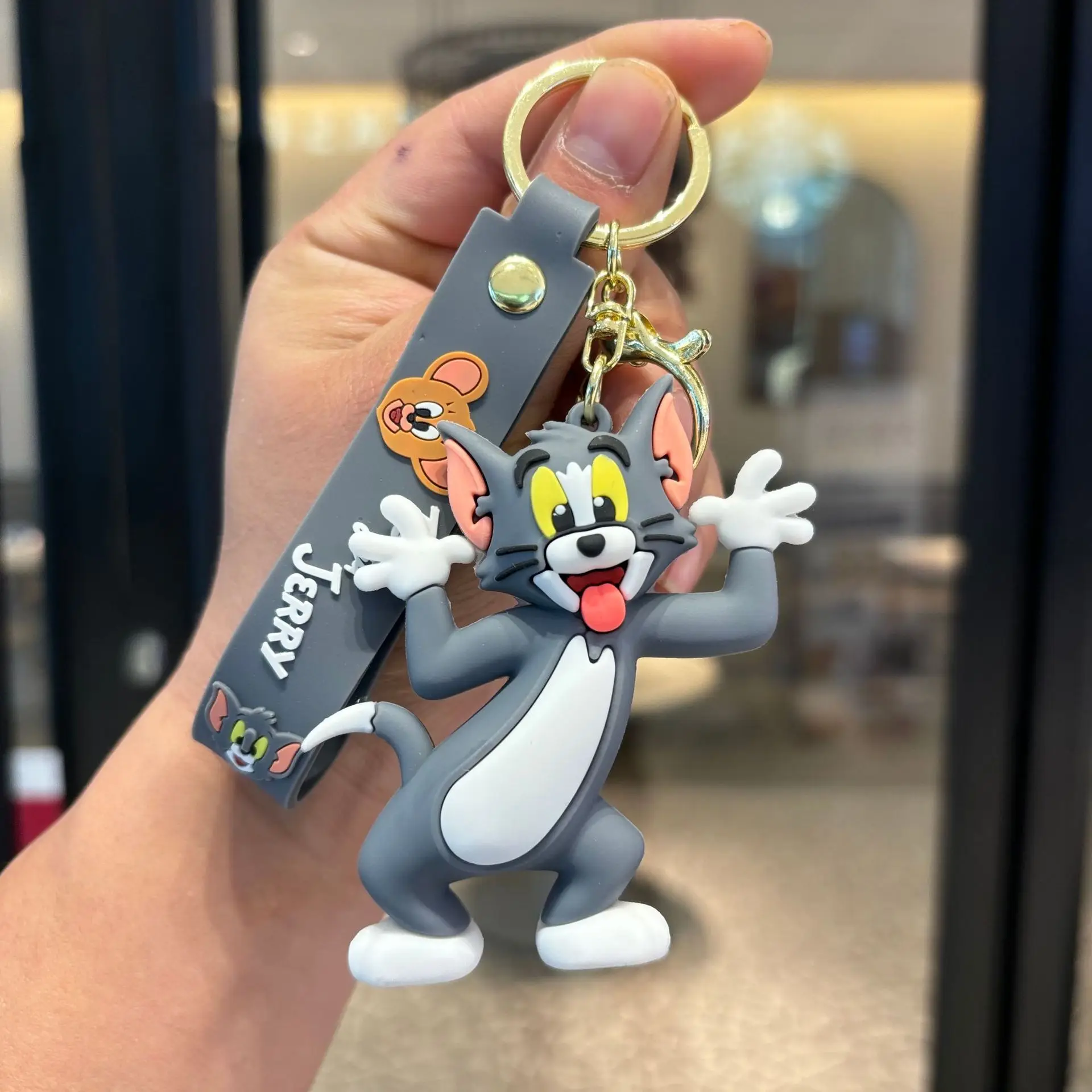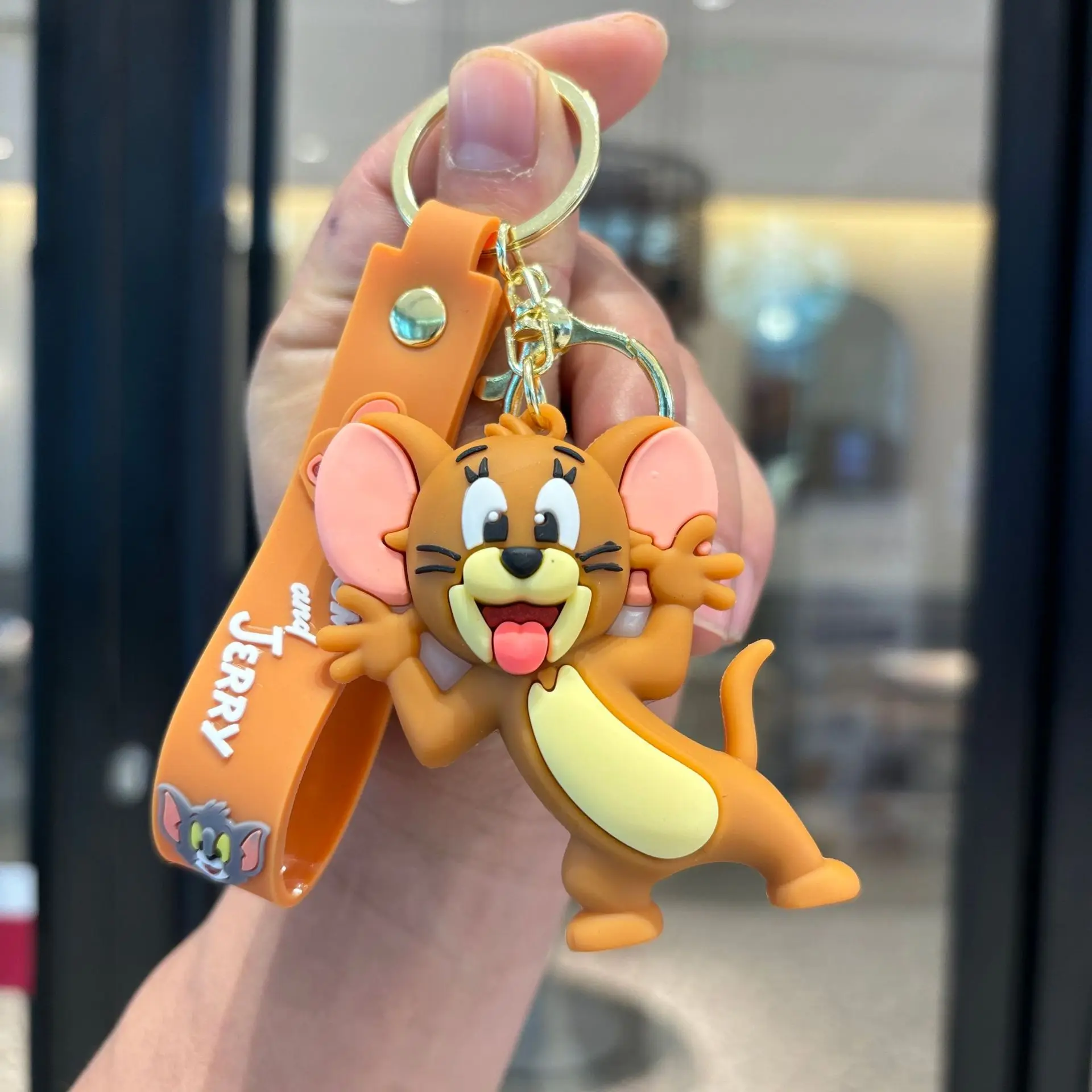 Kawaii Classic Anime Tom and Jerry Model Keychain Backpack Pendant Doll Cute Silicone Car keychain Party