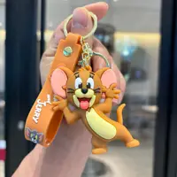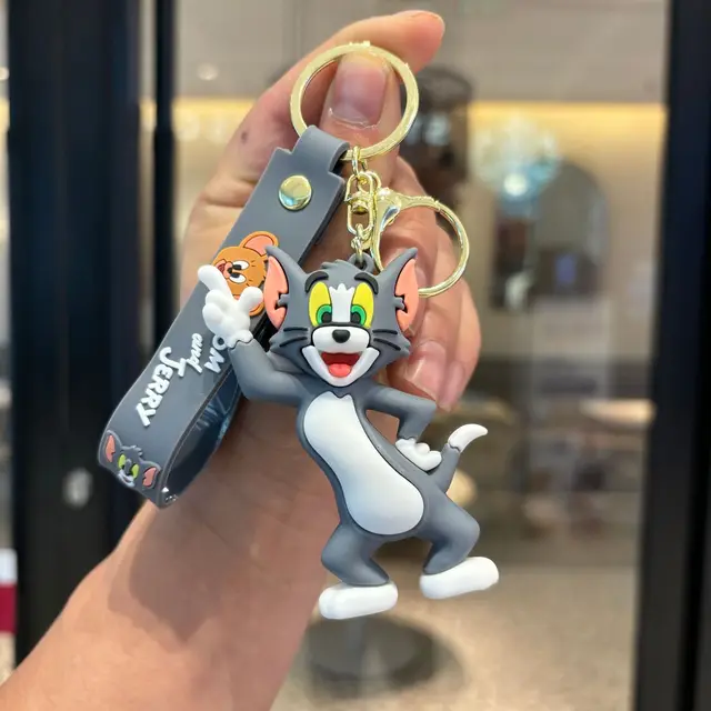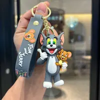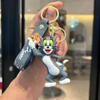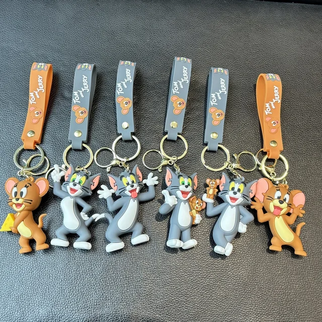 Kawaii Classic Anime Tom and Jerry Model Keychain Backpack Pendant Doll Cute Silicone Car keychain Party