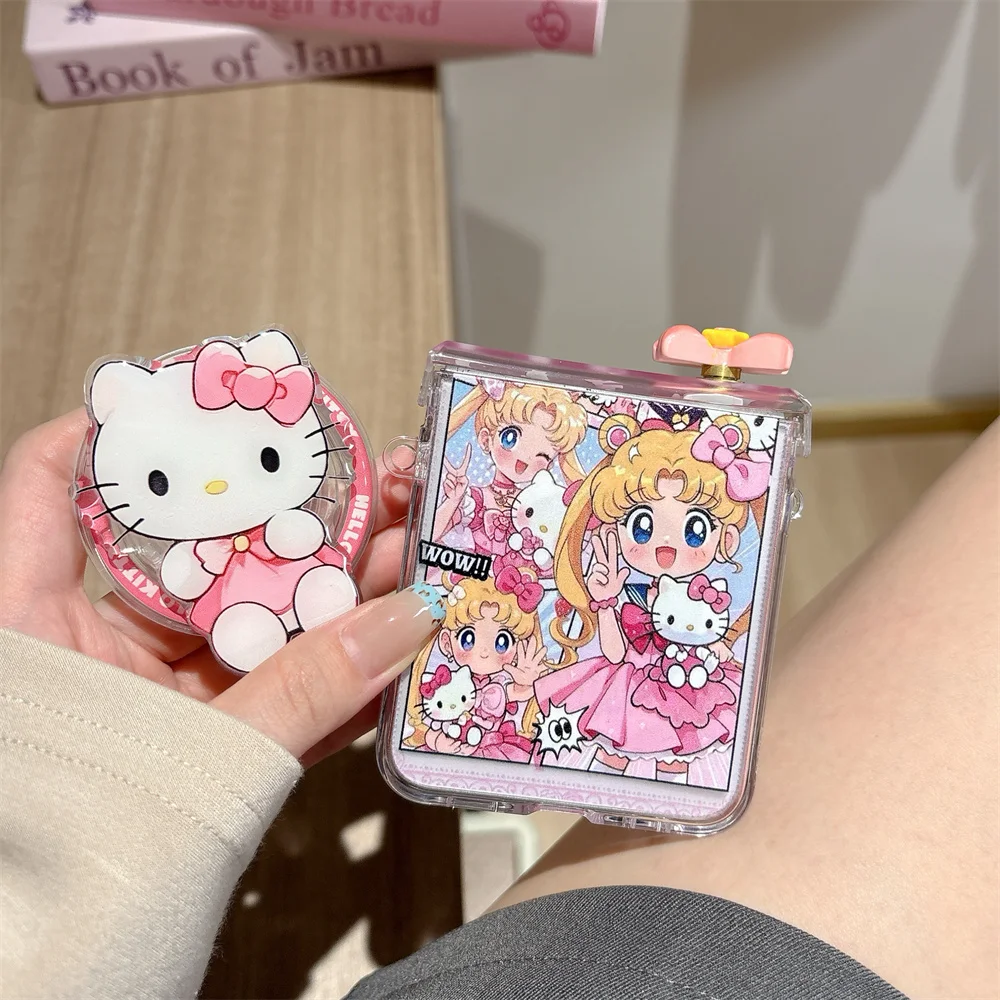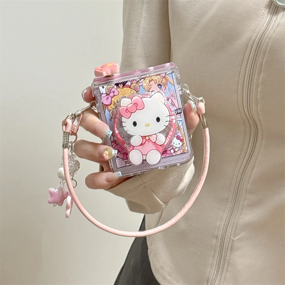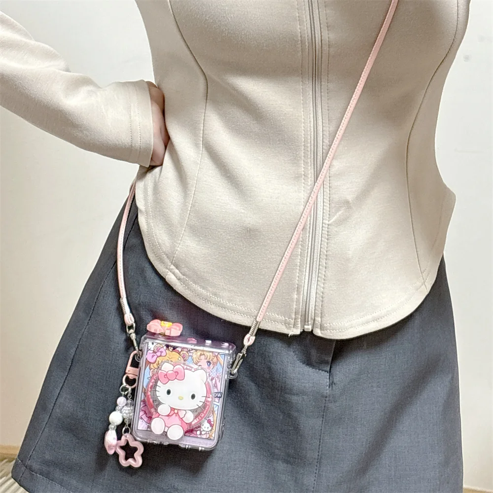 Kawaii girl cute Hellokitty Magnetic Stand phone case for Samsung Galaxy Z Flip5 Flip7 Flip6 7FE crossbody