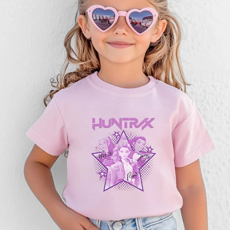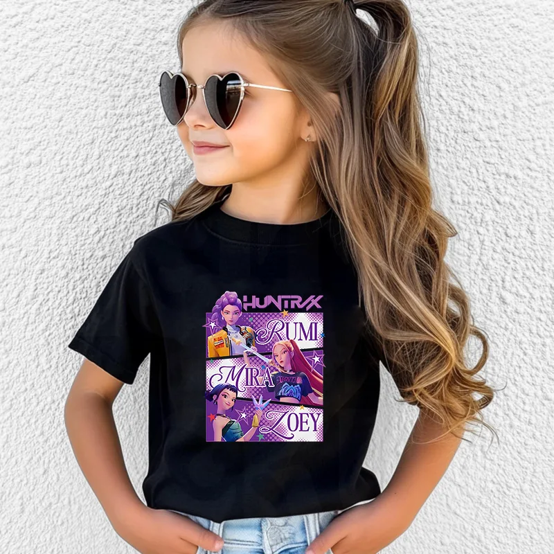 Kawaii K-POP Demon Hunters Kids T-shirt Girl Boy Clothes Children Clothing Fashion Tops Cotton Sweet