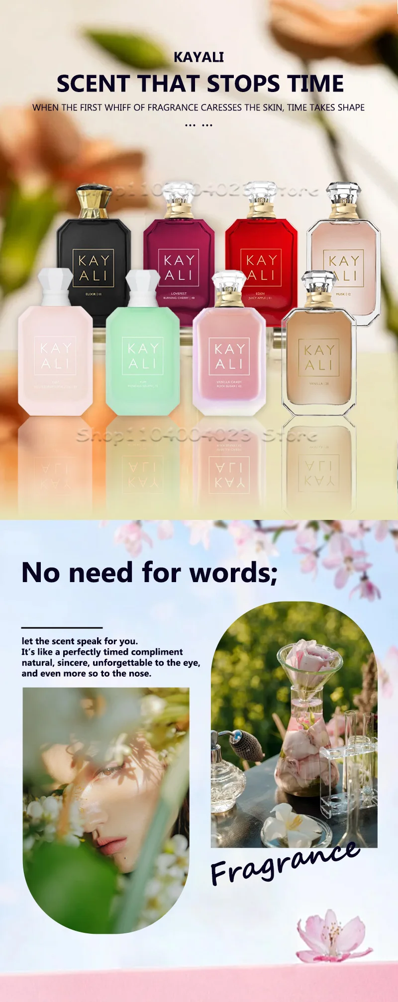 Middle Notes: JASMINE, PEAR, PEONY,GERANIUM, RASPBERRY,PEACH