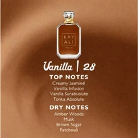 Base Notes: Vanilla, Agarwood (Oud), Musk, Oakmoss, Cashmeran