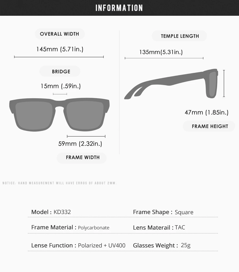 The square style frame offers a classic look while providing maximum coverage and protection for your eyes.