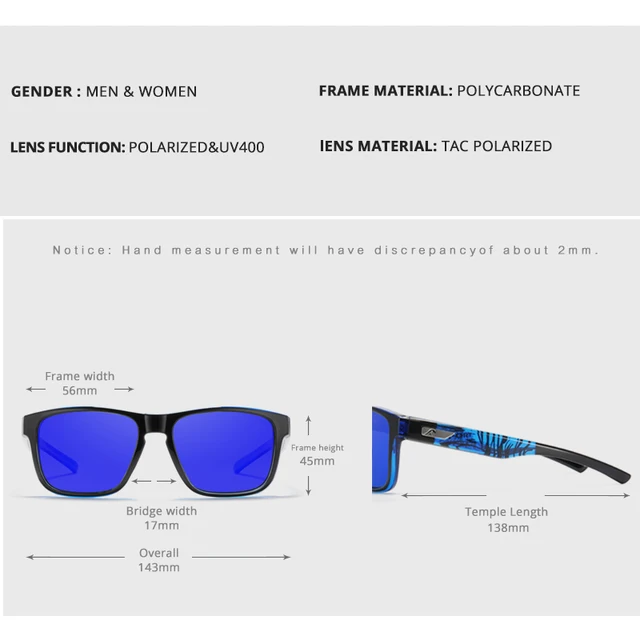 KDEAM Multi-Layer Lenses Polarized Men's Sunglasses Blocking Horizontal Glare Square Sun Glasses Women With Brilliant Colors