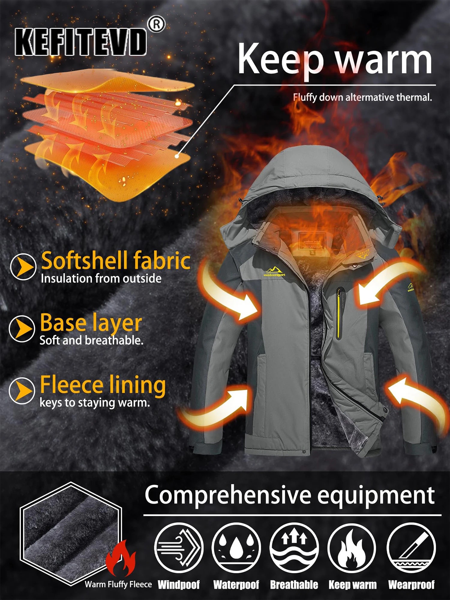 Be the first to review “KEFITEVD Winter Heavy Ski Jacket Waterproof Warm Fleece Jackets Outdoor Thermal Breathable Hiking Jacket”