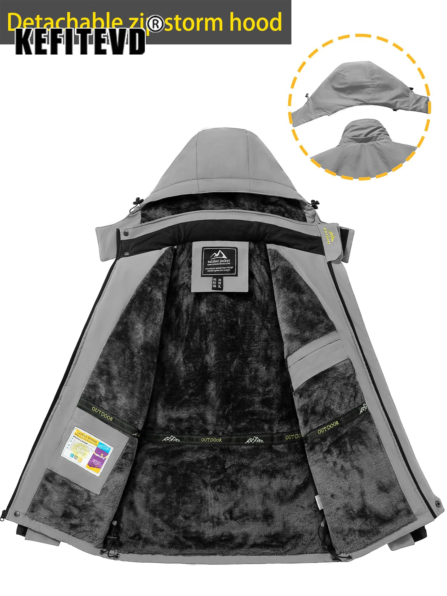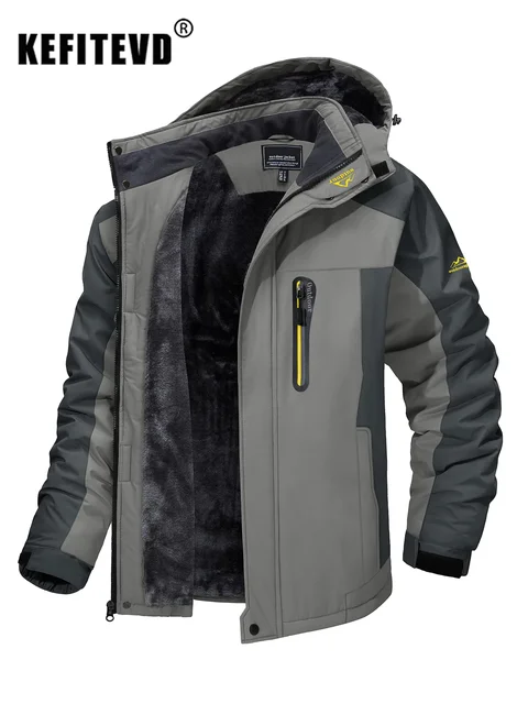 KEFITEVD Winter Heavy Ski Jacket Waterproof Warm Fleece Jackets Outdoor Thermal Breathable Hiking Jacket