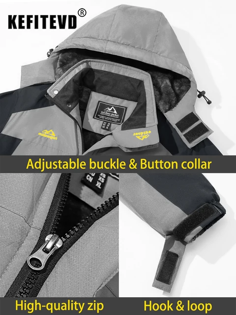 KEFITEVD Winter Heavy Ski Jacket Waterproof Warm Fleece Jackets Outdoor Thermal Breathable Hiking Jacket Windbreaker Snow Parka