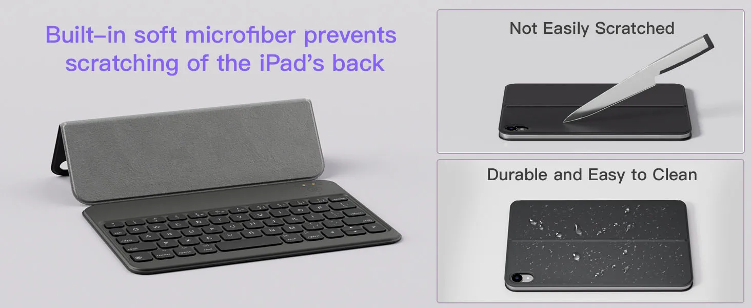 - 𝗨𝗽𝗴𝗿𝗮𝗱𝗲 𝗠𝗮𝘁𝗲𝗿𝗶𝗮𝗹:The keyboard case for iPad Mini is made of semi-silicone fabric, providing a soft and comfortable touch. It is scratch-resistant and easy to clean.